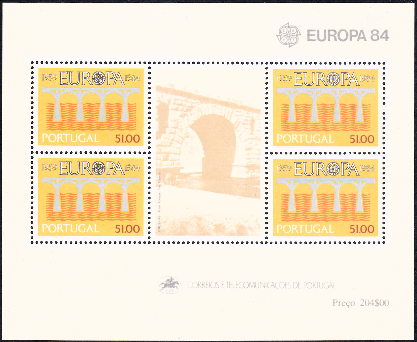 Die Europamarke 1984 erschien in Portugal am 2. Mai 1983 auch als Block mit vier Marken zu 51,00 Escudo. Die Auflage betrug 300 000 Blocks.