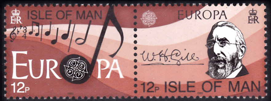 In Großbritannien - Isle of Man erschienen die Europamarken 1985 am 24. April 1985 zum Gemeinschaftsthema "Europäisches Jahr der Musik". Hier eine Marke zu 12 Pence mit Anfangstakte der Hymne "O Land of our Birth".