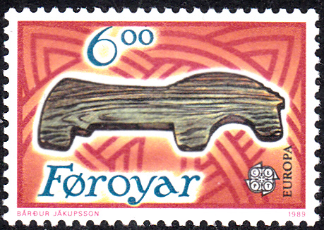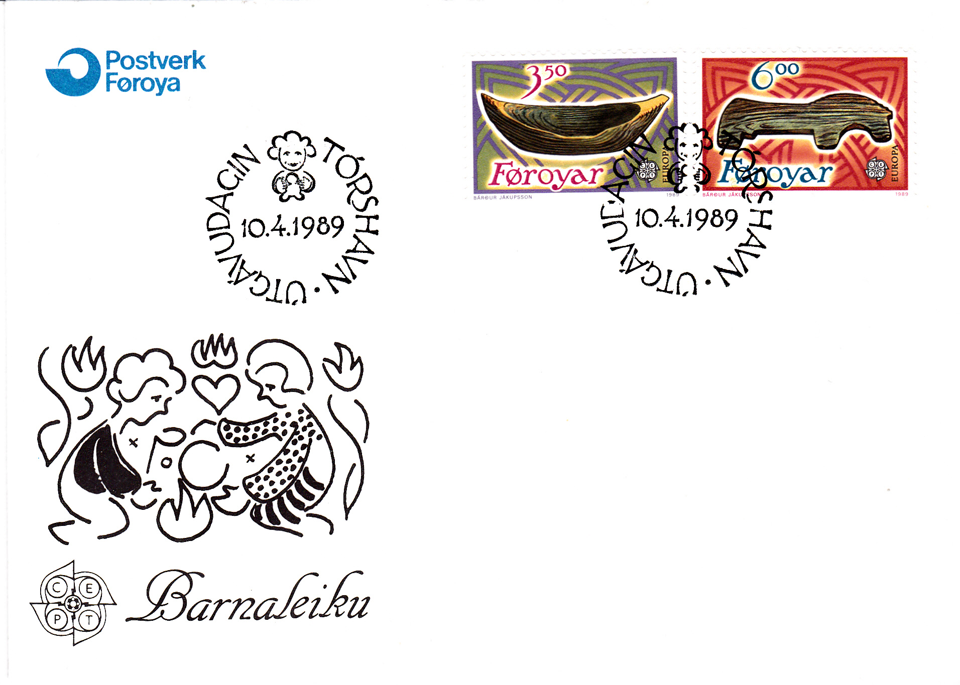Auf den Färöer-Inseln erschienen die Europamarken 1989 zum Gemeinschaftsthema " Kinderspiele" am 10. April 1989. Hier die Marke zu 6,00 Kronen mit der Abbildung eines Holzpferdes. Die Auflage betrug 602 000 Stück.