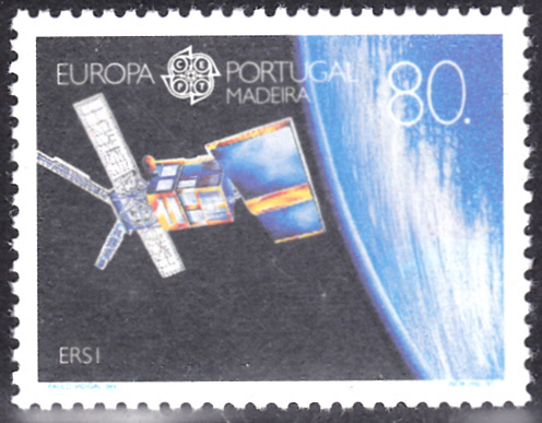 In Portugal-Madeira erschienen die Europamarken 1991 zum Gemeinschaftsthema "Europäische Weltraumfahrt" am 11. April 1991. Hier eine Marke zu 80 Escudo mit dem Erdbeobachtungssatelliten "ERS-1". Die Auflage dieser Marke betrug 600 000 Stück.