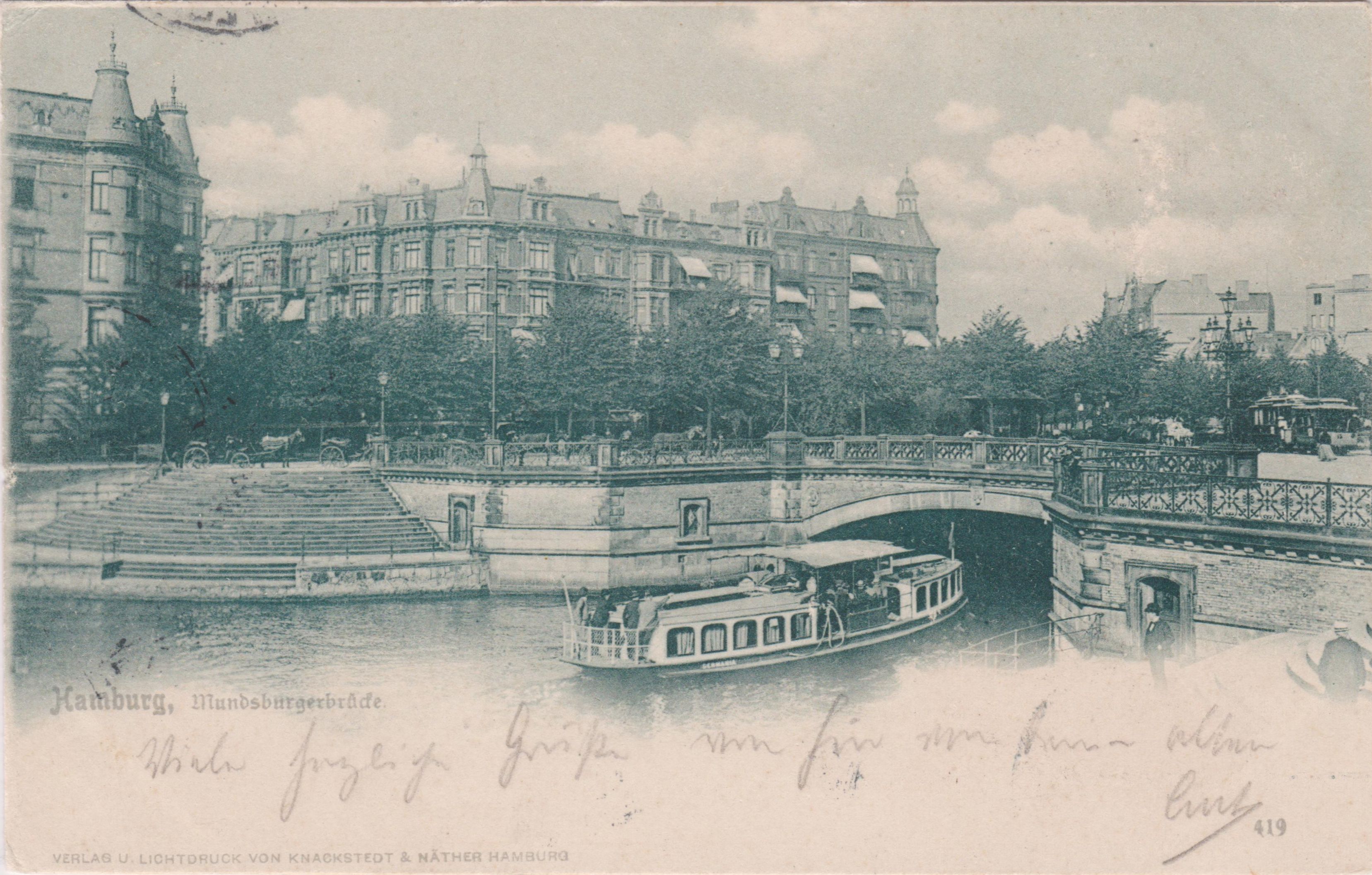 Die Schute liegt hier, zusammen mit der Schute BT S - 5, in der Kleinen Alster gegenüber den Alsterarkaden!