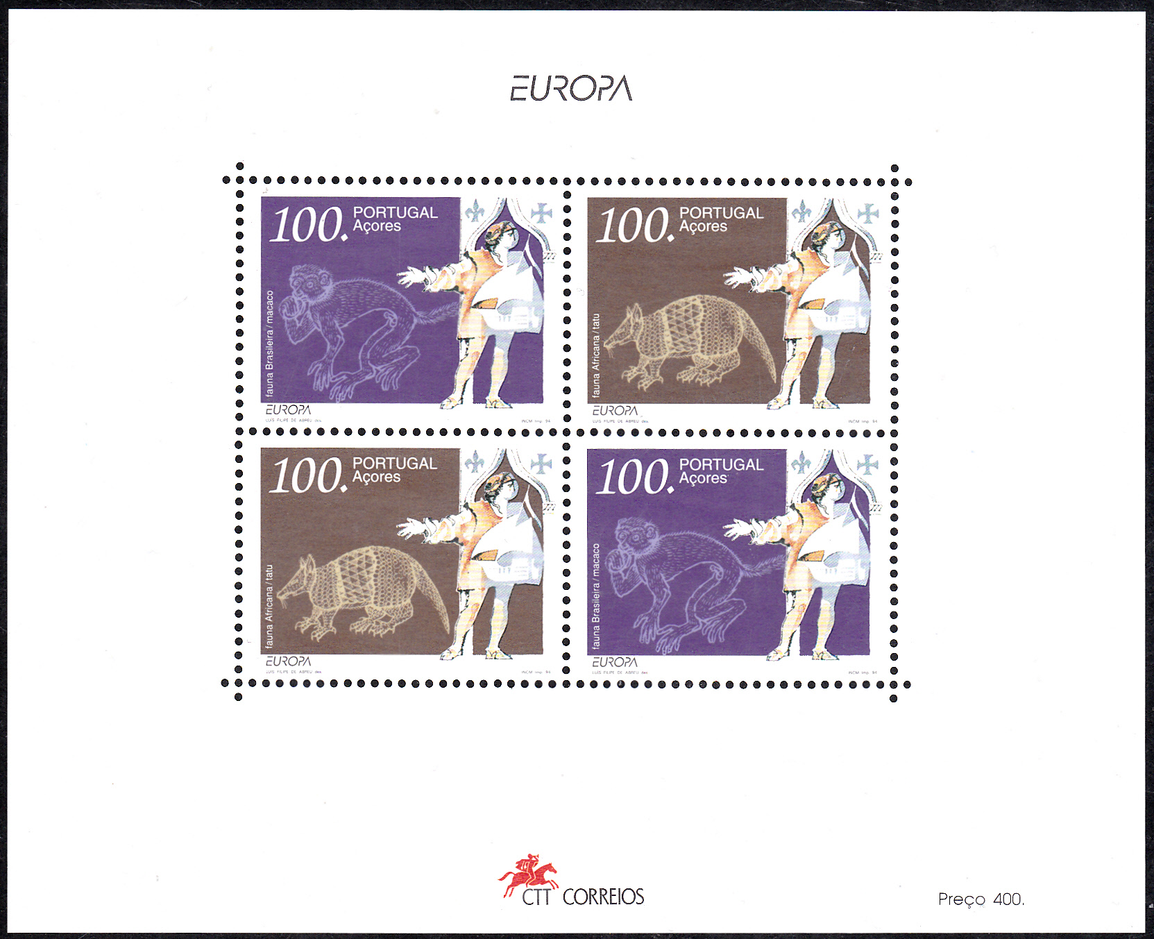 In Portugal Azoren ist die Europamarke MiNr 446 zusammen mit einer weiteren Europamarke (MiNr 447) mit einer Abbildung eines Gürteltieres auch in einem Block erschienen. Die Auflage des Blockes betrug 160 000 Stück. Hier ein postfrischer Block: