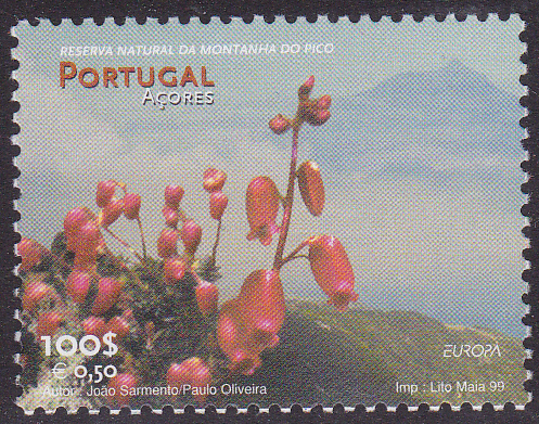 In Portugal Azoren erschien die Europamarke 1999 zum Gemeinschaftsthema "National- und Naturparks" am 5. Mai 1999. Hier die Marke zu 100 Escudo/ 0,50 € mit einer Abbildung aus dem Landschaftsschutzgebiet am Berg Pico. Die Marke erschien in einer Auflage von 250 000 Stück.