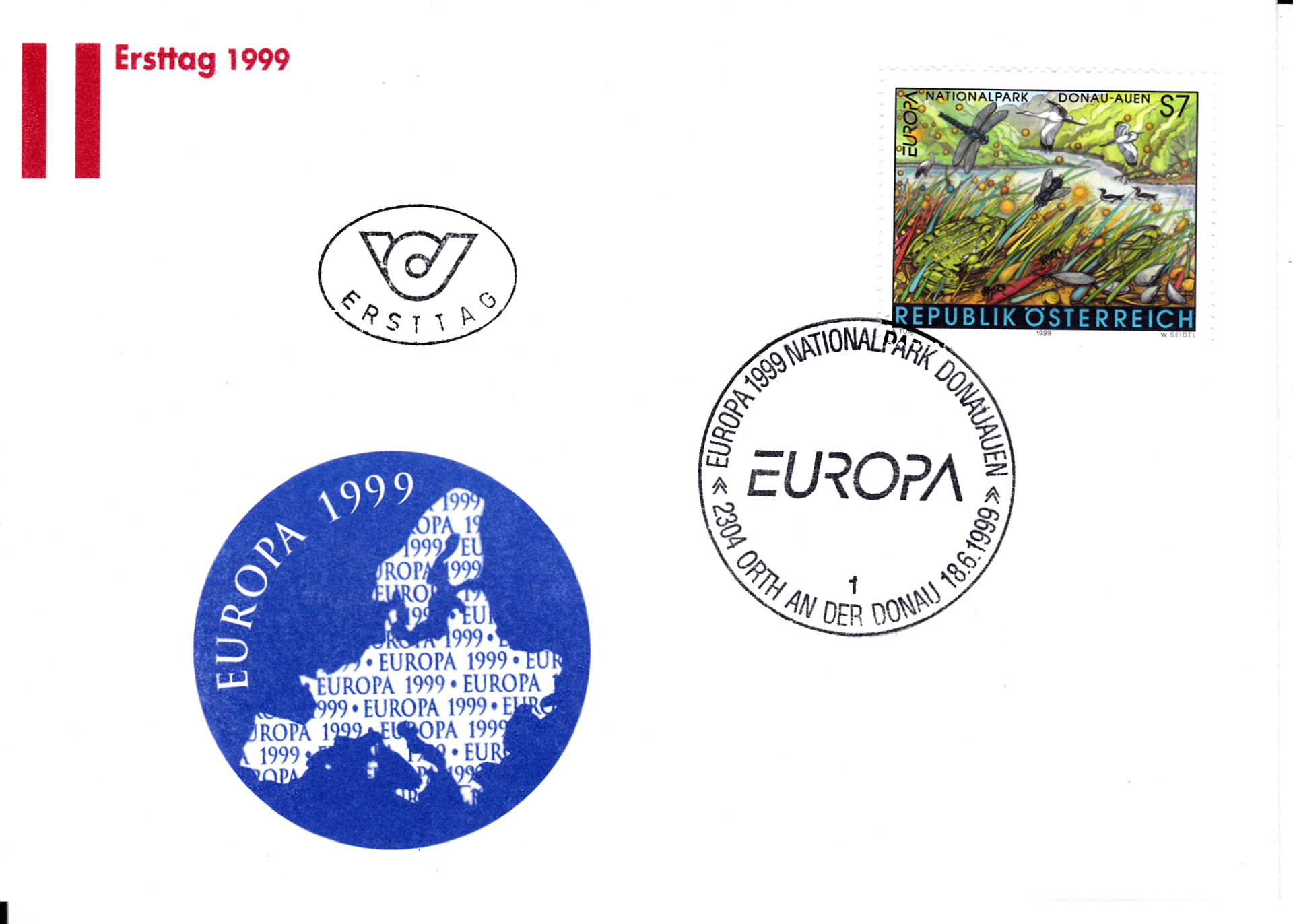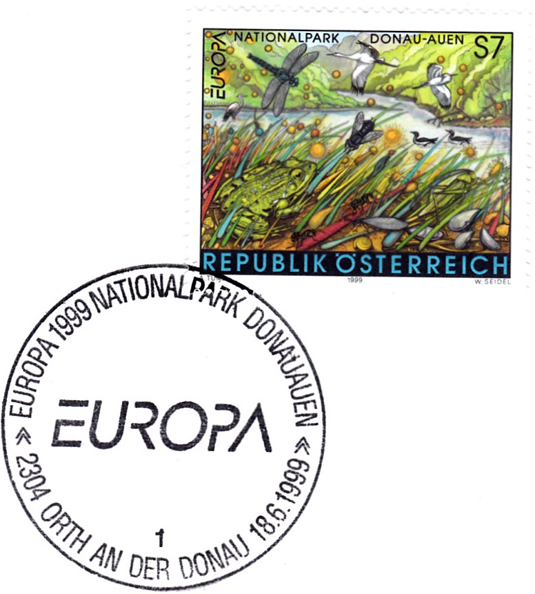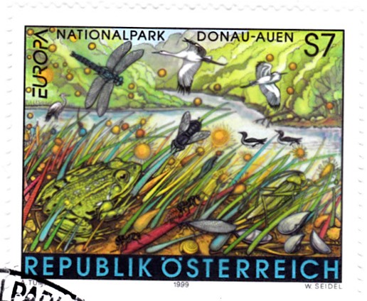 In Österreich erschien die Europamarke 1999 zum Gemeinschaftsthema "National- und Naturparks" am 18. Juni 1999. Hier zeige ich die Marke zu 7 Schilling mit einer Abbildung aus dem Nationalpark Donauauen. Die Marke erschien in einer Auflage von 2 900 000 Stück.
