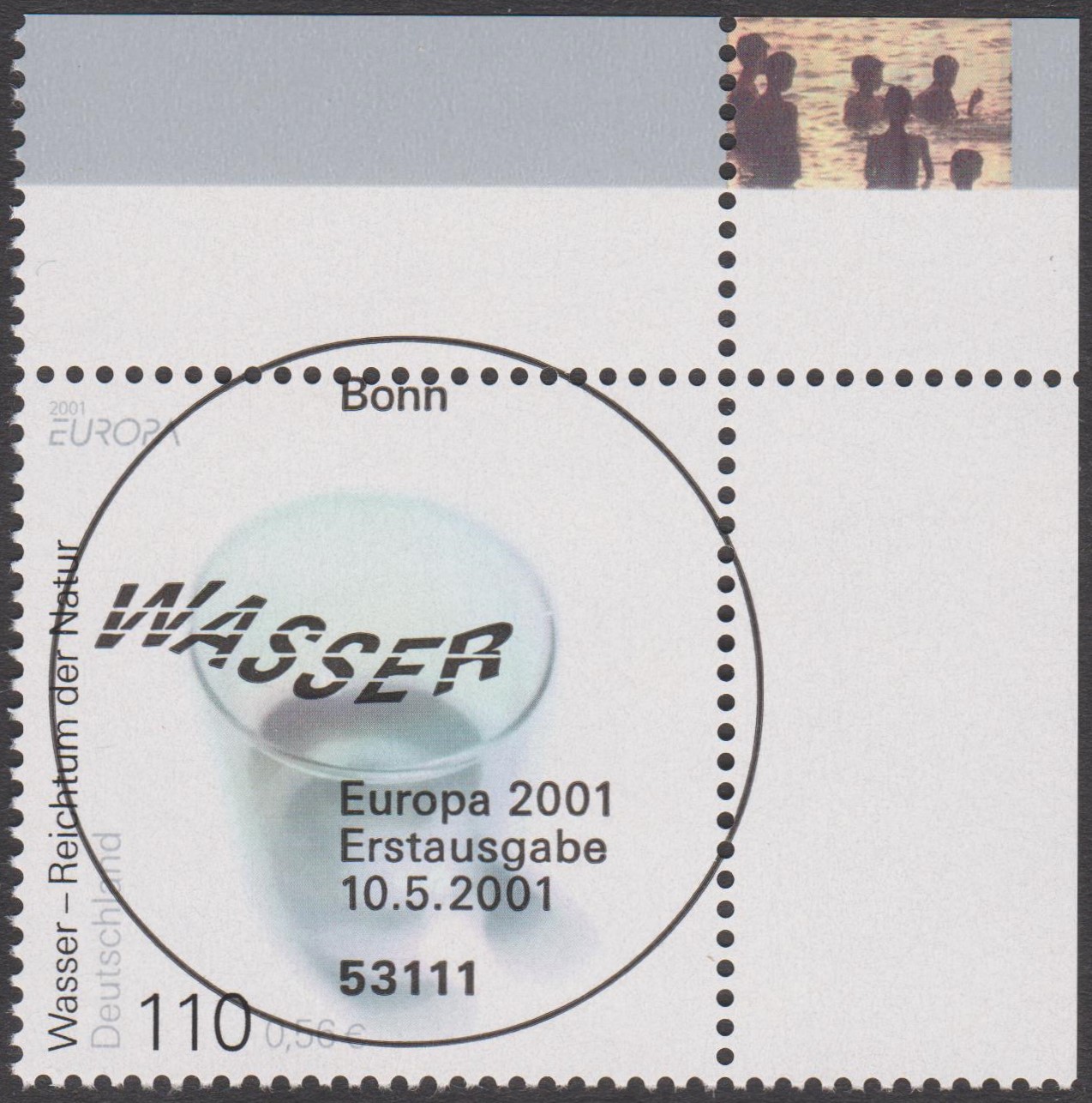 Bei der Deutschen Bundespost erschien am 10. Mai 2001 eine Europamarke 2001 zum Gemeinschaftsthema "Lebensspender Wasser". Die Marke zu 110 Pf / 0,56 € bildet ein Wasserglas ab. Die Auflage betrug 30 000 000 Stück.