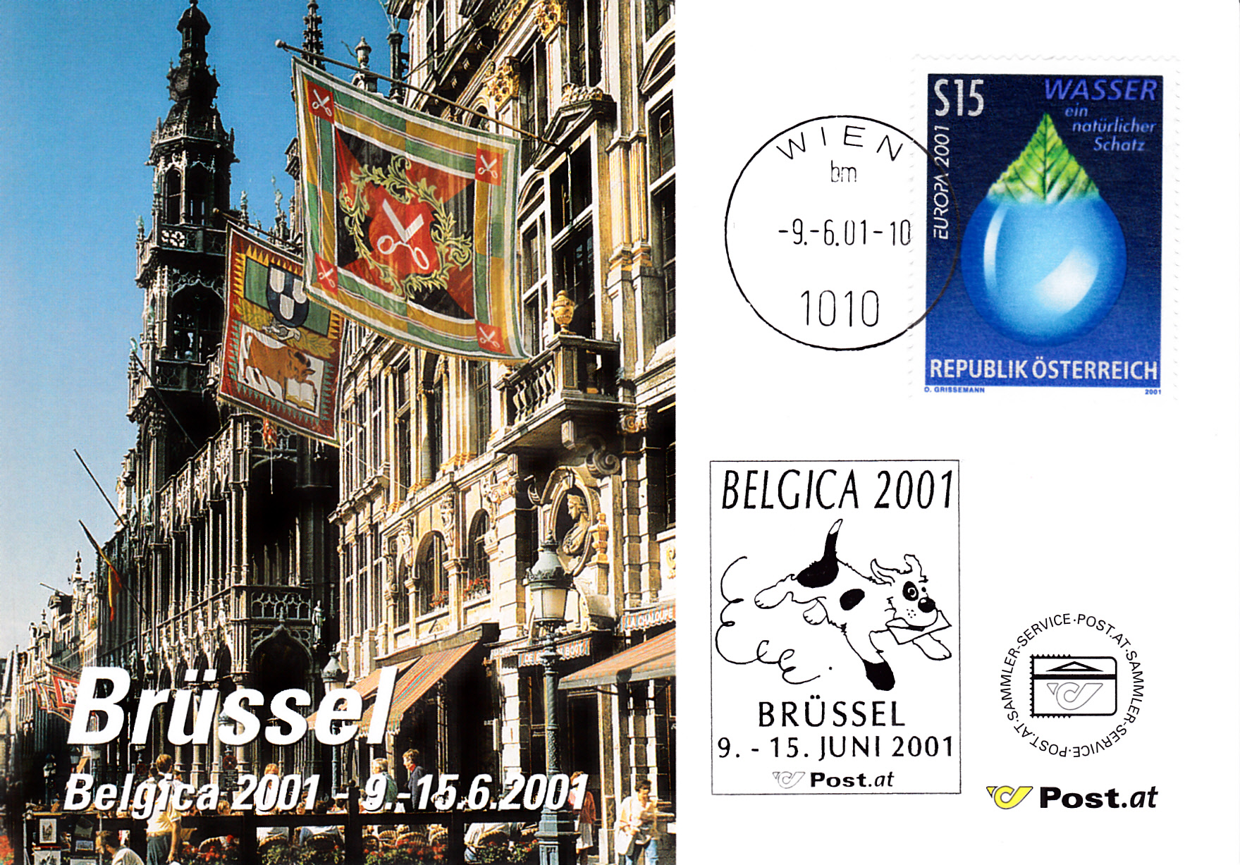 In Österreich erschien die Europamarke 2001 am 18. Mai 2001 zum Gemeinschaftsthema "Lebensspender Wasser". Die Marke zu15 Schilling zeigt die Darstellung "Blatt erwächst aus Wassertropfen". Die Auflage betrug 1 500 000 Stück.