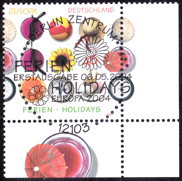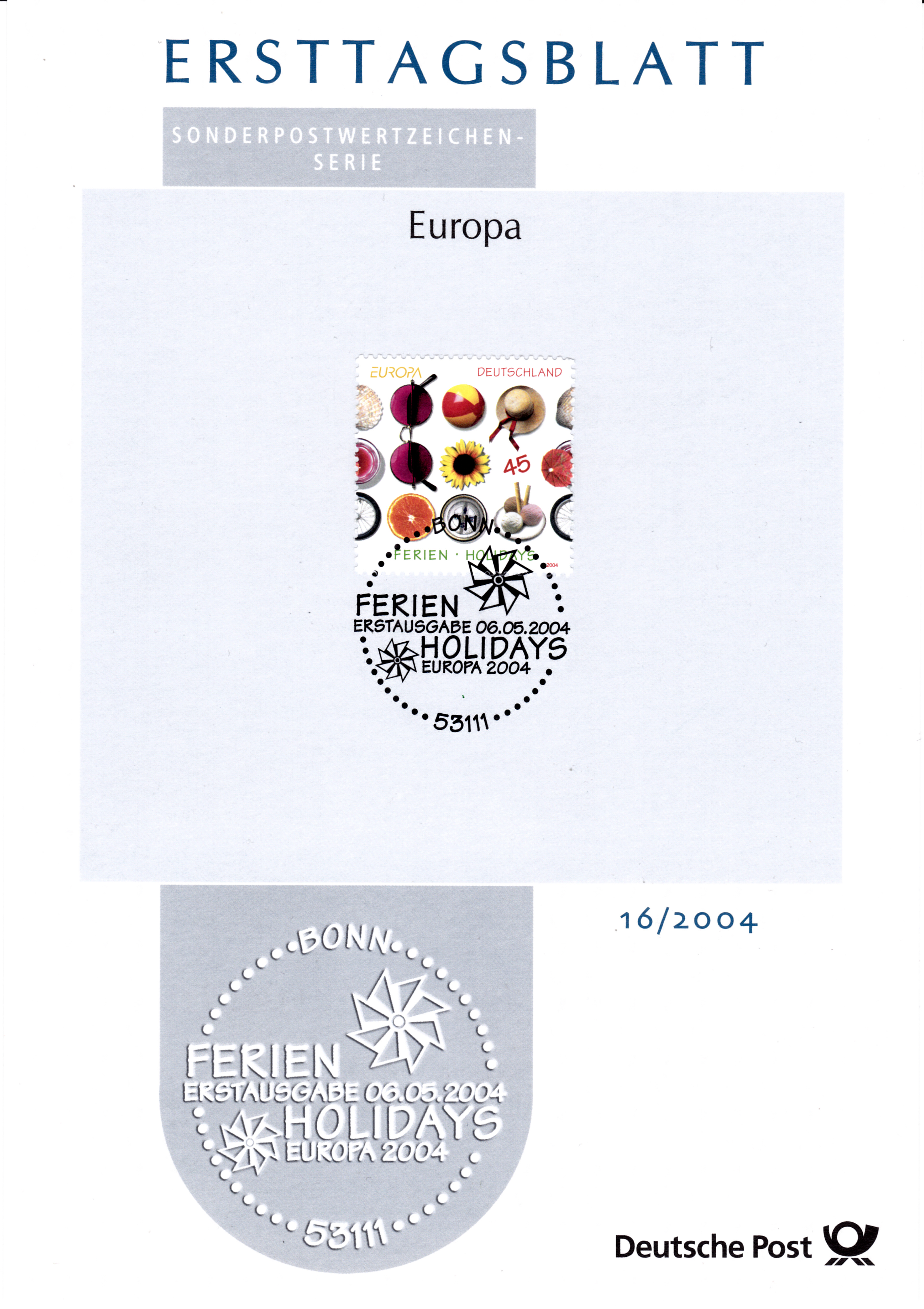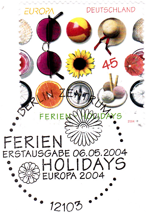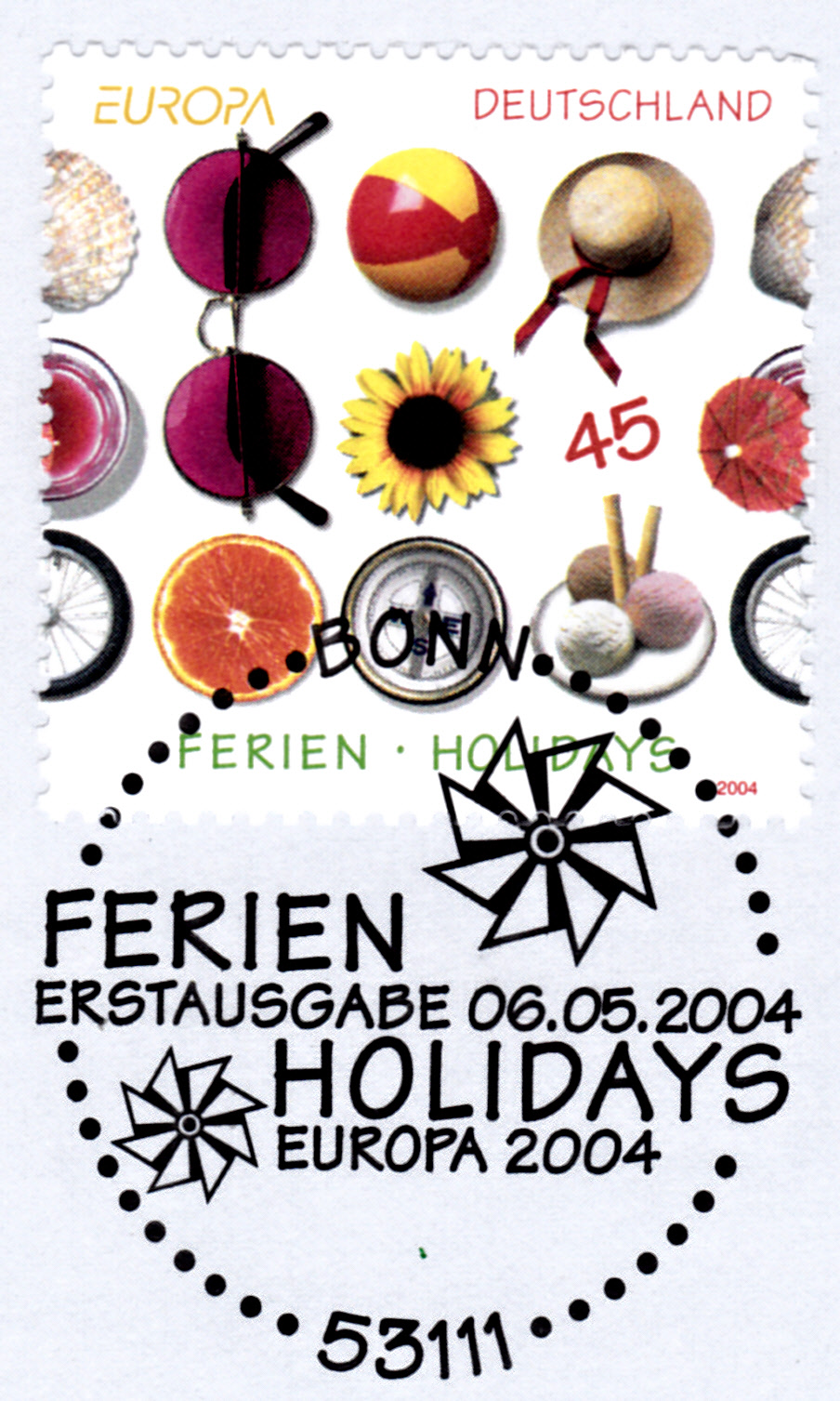 Diese Europamarke 2004 wurde mit dem Ersttagstempel Bomm entwertet