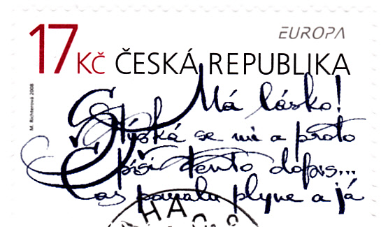 In der Tschechischen Republik erschien die Europamarke 2008 zum Gemeinschaftsthema "Der Brief" am 7. Mai 2008. Hier die Marke zu 17 Kronen mit der Handschrift: "Meine Liebe! Ich habe Sehnsucht, und darum schreibe ich diesen Brief... Die Zeit fließt langsam, und ich...". Die Marke hatte eine Auflage von 344 000 Stück.