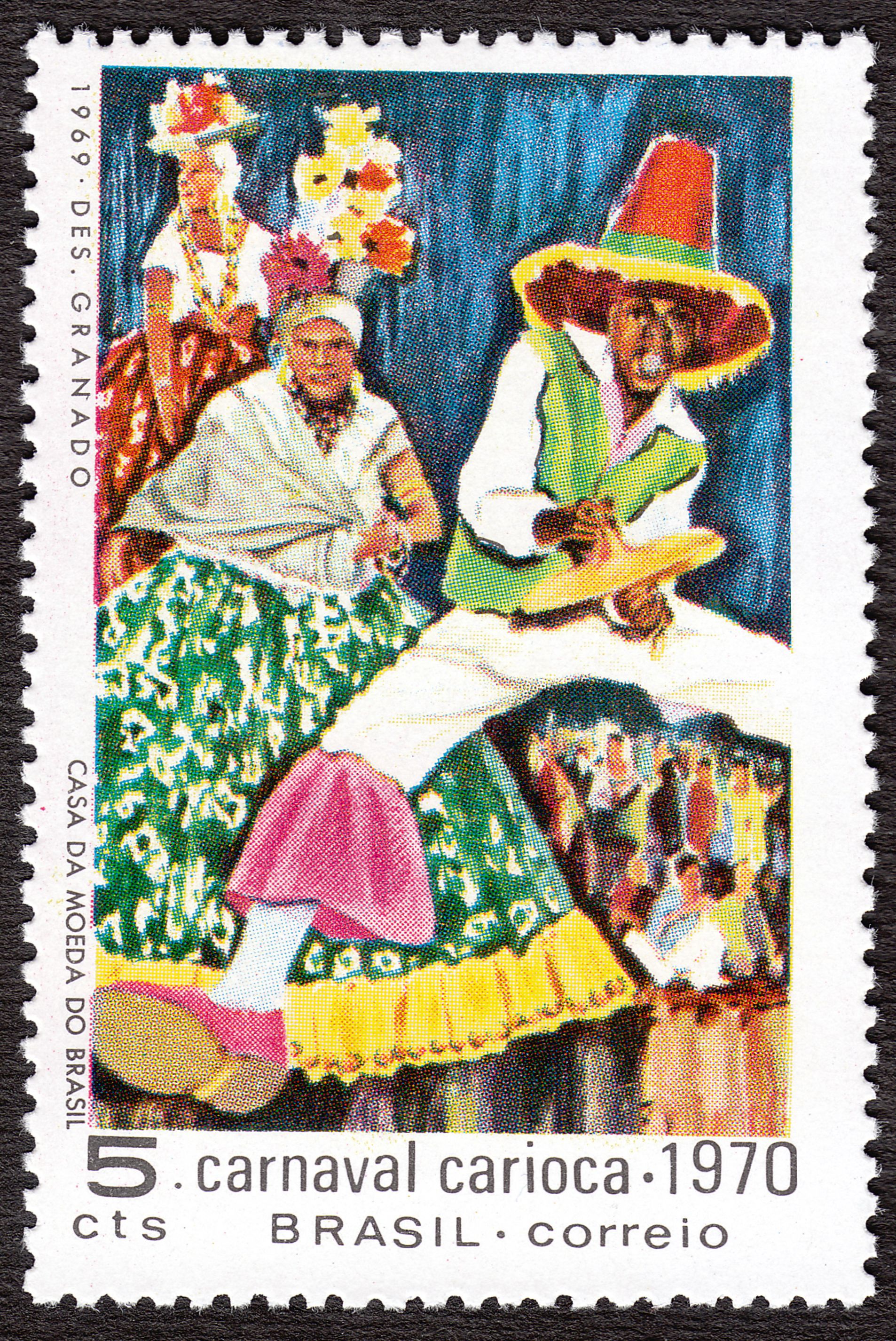 Im Jahre 1970 erschien in Brasilien dieses Postwertzeichen in der Wertstufe zu "5 cts" zum Thema "Carnaval carioca" = Karneval in Rio de Janeiro: