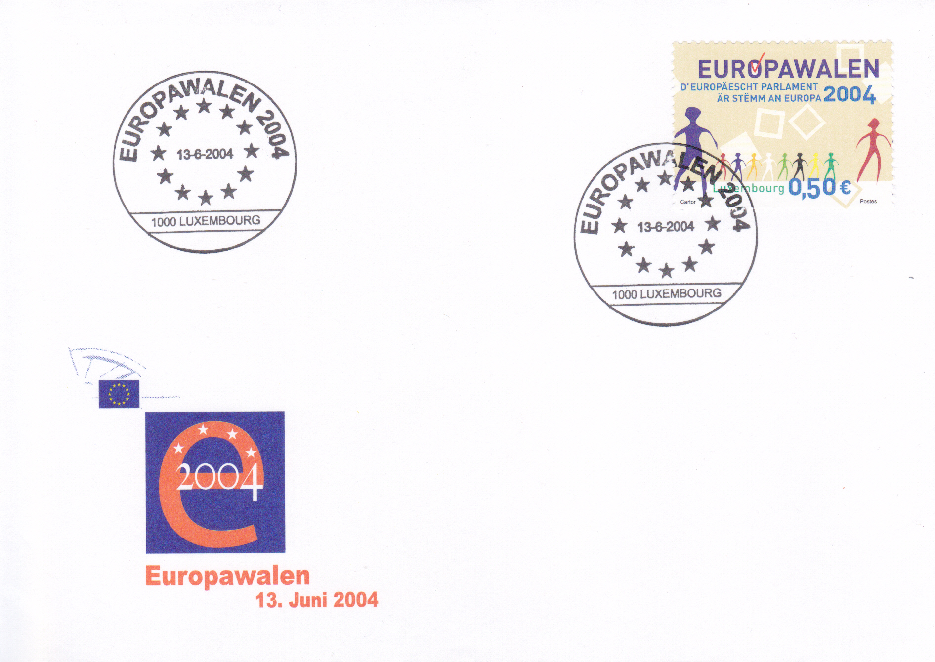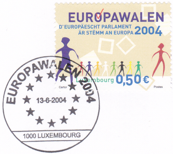 Nicht gelaufener FDC mit der bereits gezeigten Marke aus Luxemburg (MiNr 1644) zu den Sechsten Direktwahlen zum Europäischen Parlament und dem Ersttagsonderstempel aus Luxemburg.