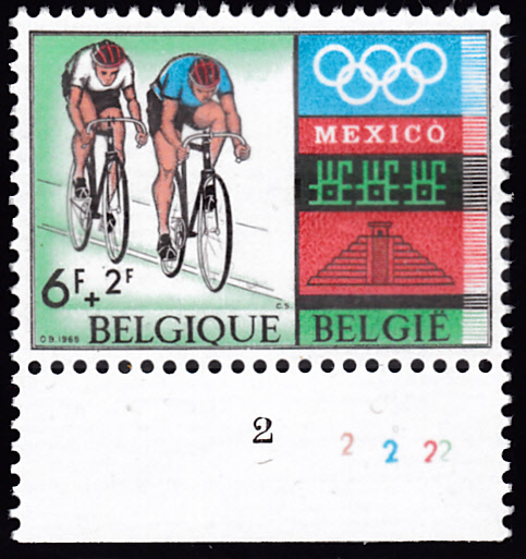 In Belgien ist in einer Serie zu den Olympischen Sommerspielen 1968 diese Marke (MiNr 1516) mit zwei Radfahrer.