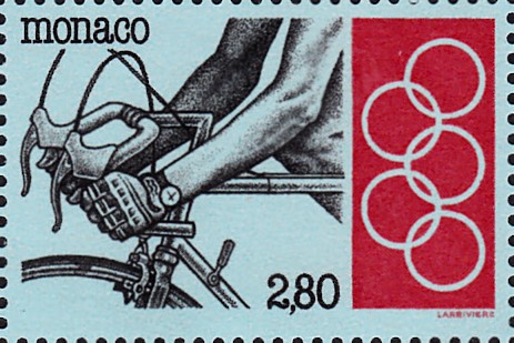 Diese Marke aus Monaco (MiNr 2139) zeigt nur einen Teil des Rennrades und die Arme des Fahrers.