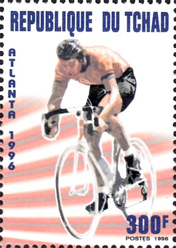 Auf dieser Marke der Serie aus dem Tschad (MiNr 1431 A) sehen wir einen Radrennfahrer.