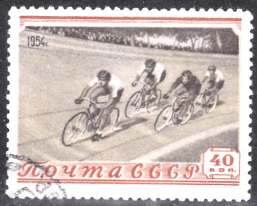 In der Sowjetunionist 1954 diese Marke (MiNr 1712) mit vier Bahnradfahrer erschienen.