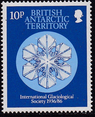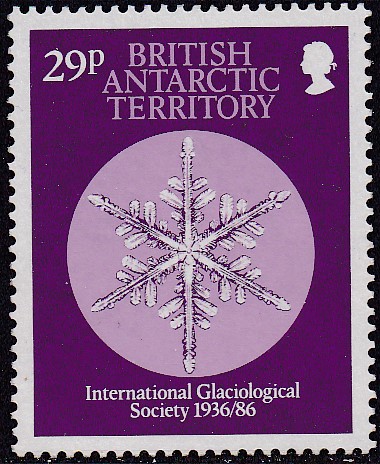 Am 6. Dez. 1986 erschien in den Britischen Gebieten in der Antarktis eine Serie zum Jubiläum "50 Jahre Internationale Glaziologische Gesellschaft". Hier die ersten zwei Marken dieser Serie mit der Darstellung von Schneekristallen: