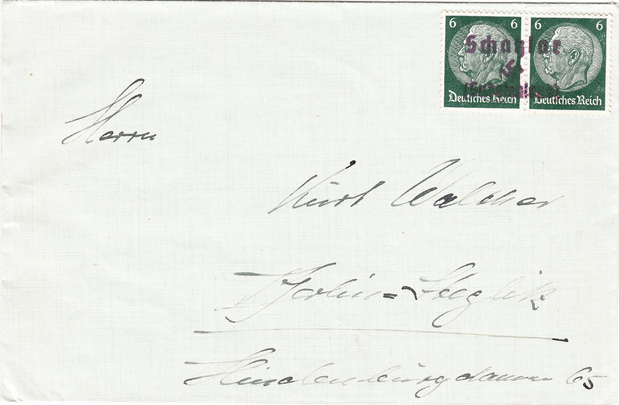 Dieser Brief wurde bereits am 12.10.1938 als EF mit einem 12 Pf Wert der Dauerserie Hindenburg frankiert in Altrohlau aufgegeben. Die Frankatur wurde mit einem deutschen Notstempel entwertet: