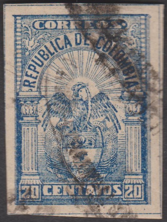 Kolumbien MiNr. 150 B = 20 CENTAVOS blau ungezähnt: