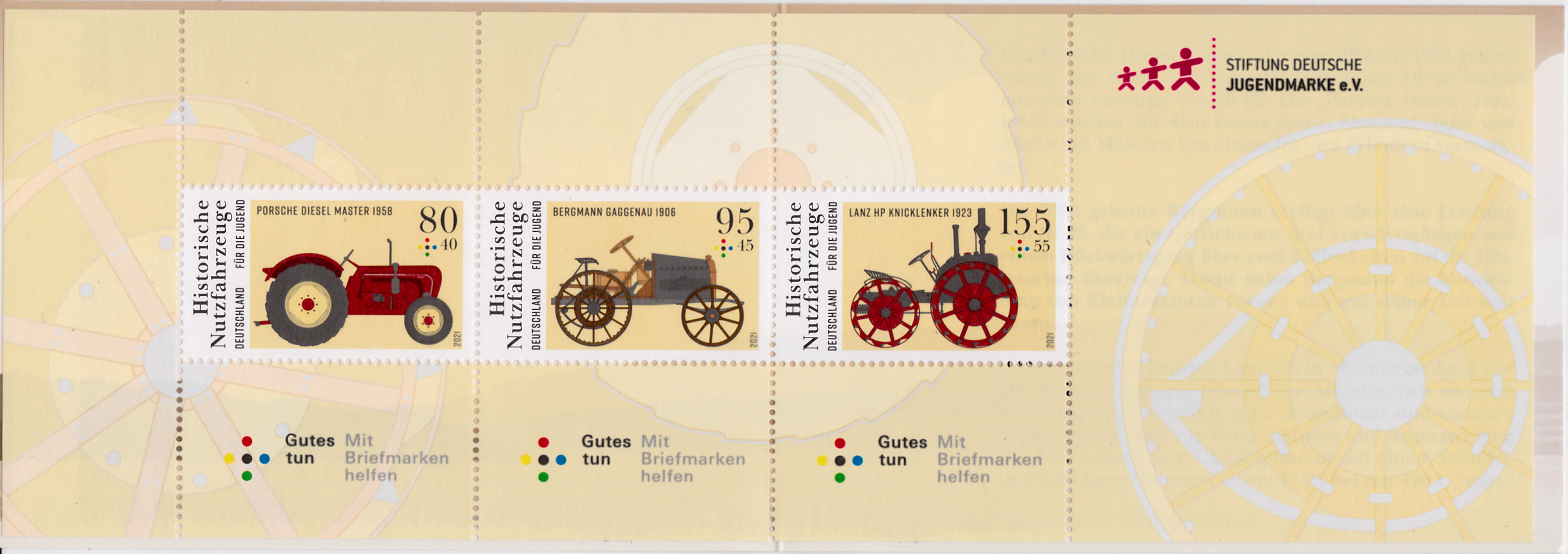 Auf dieser Marke aus Liechtenstein (MiNr 1778) wird ein Fordson-Traktor aus dem Jahre 1921 gezeigt.