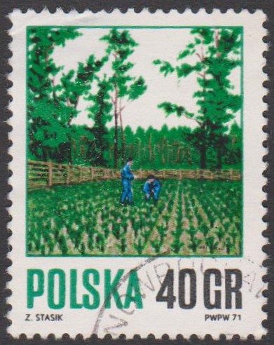 Polen MiNr. 2067 zeigt eine Schonung mit Setzlingen: