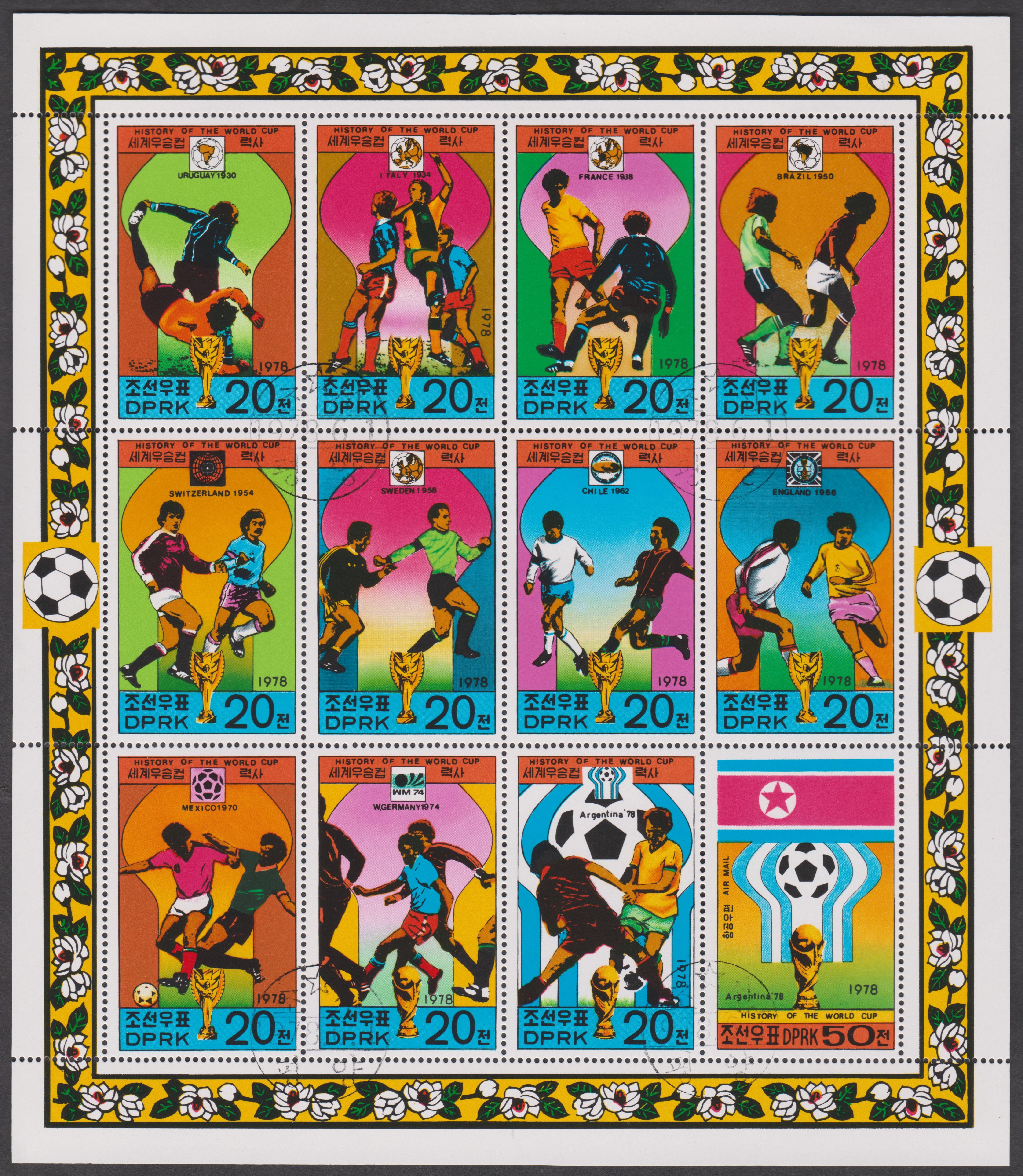 In Nordkorea erschien aus Anlass der WM 1978 eine Serie mit allen Weltmeistern von 1930 bis 1974. Hier der Wert zu Ehren der Titelträger von 1930 und 1950.