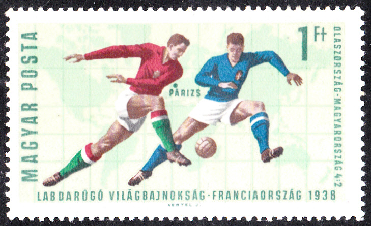 Die Marke (MiNr 2245 A) aus Ungarn aus der Serie zur WM 1966 erinnert an des Endspiel 1938. Sie zeigt zwei Spieler in den Nationaltrikots von Italien und Ungarn vor einer Weltkarte mit dem Endspielort des WM-Finalspiels der WM 1938 und dem Resultat des Spieles Italien - Ungarn 4:2.