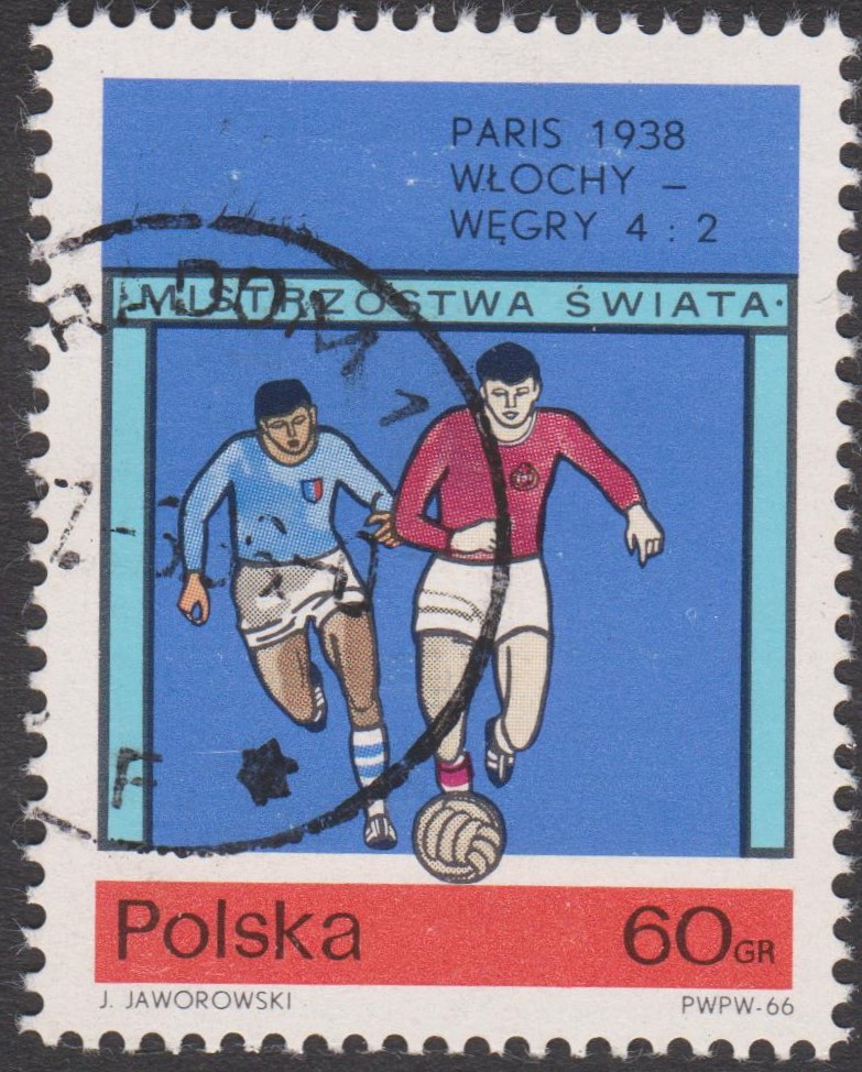 Polen MiNr. 1667 dokumentiert das Finale der Fußball-WM 1938 in Paris, das Italien gegen Ungarn 4:2 gewann:
