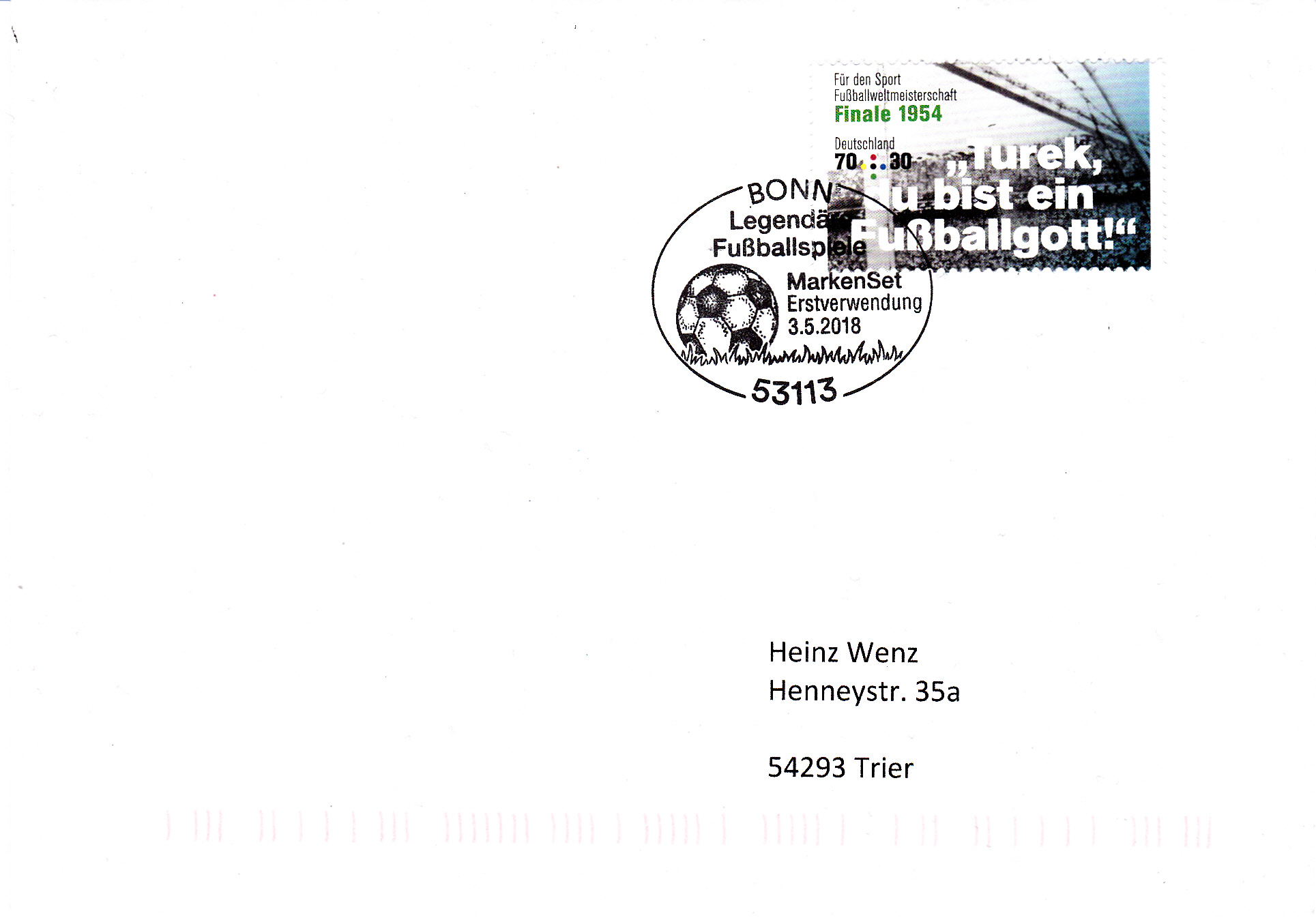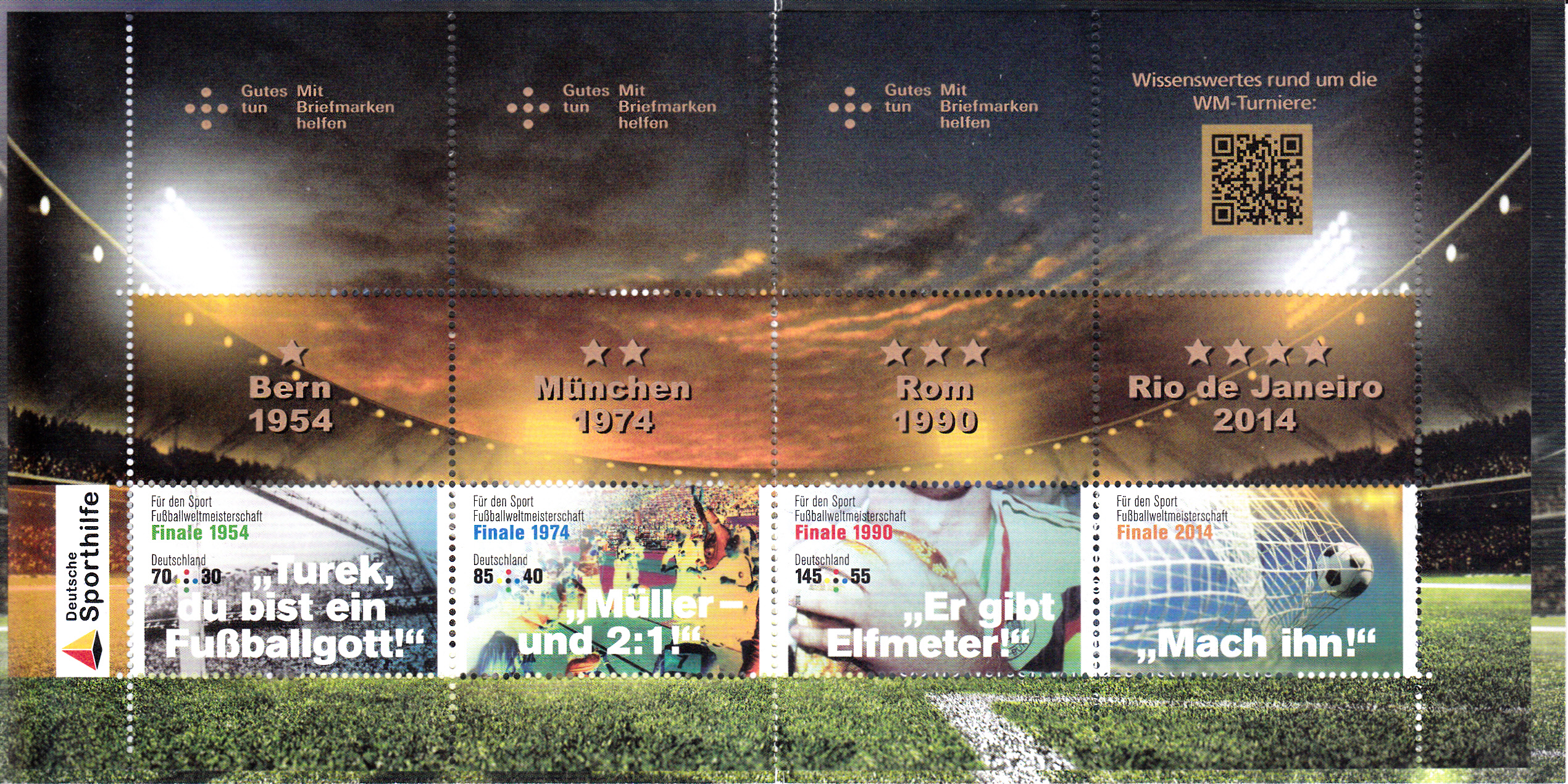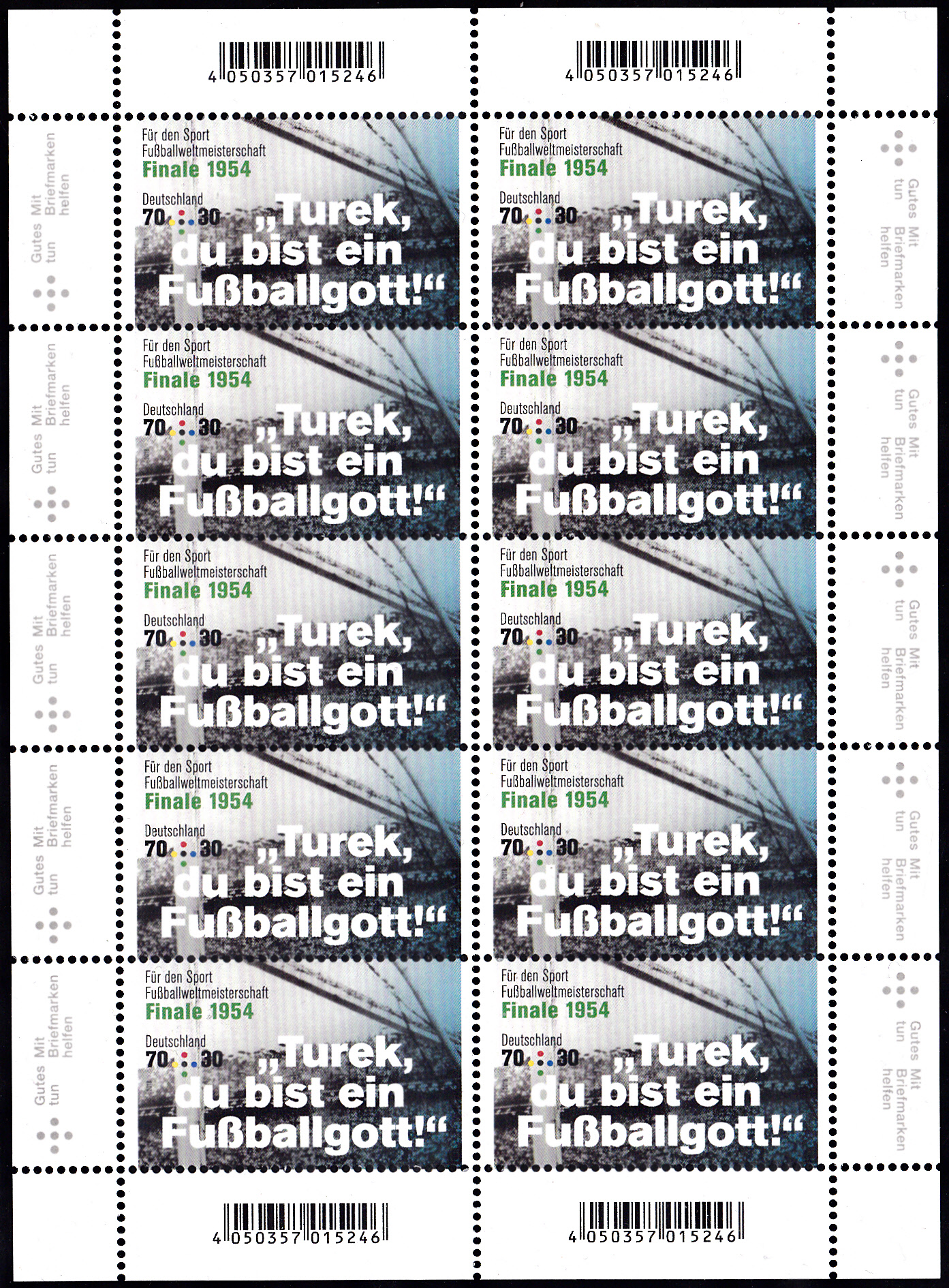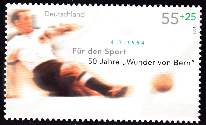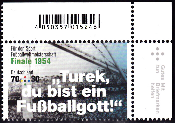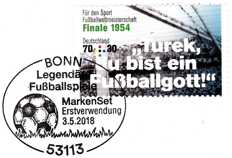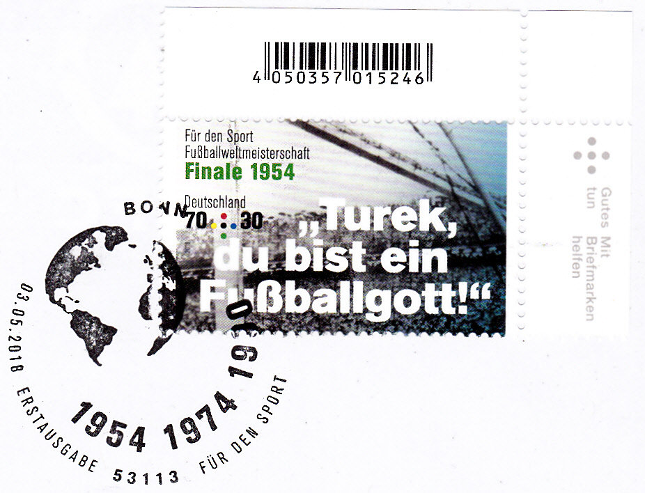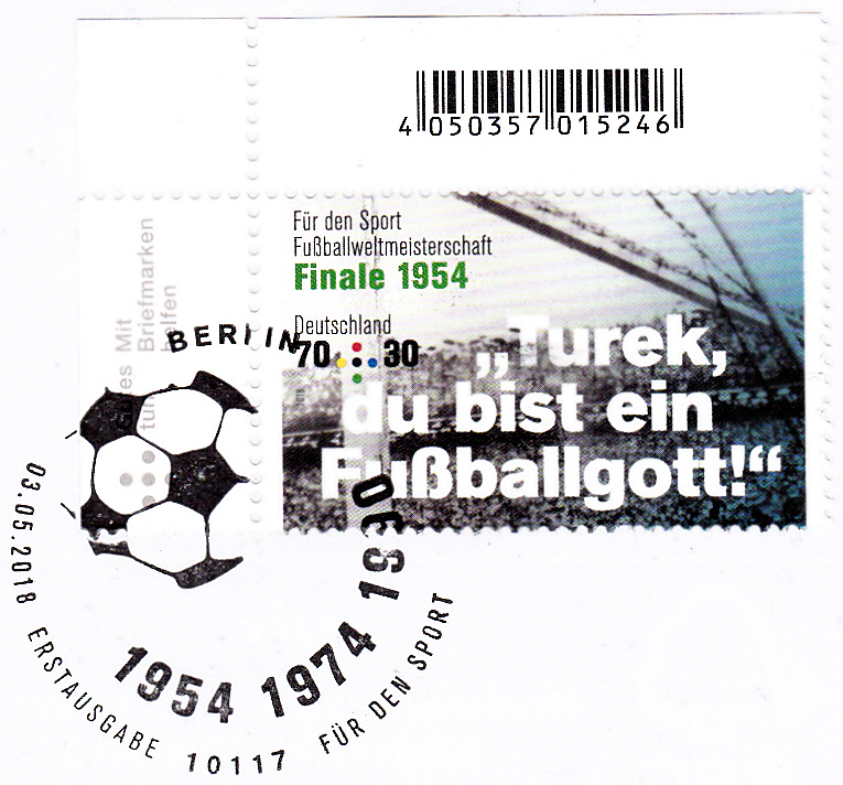 In der Zuschlagsmarkenserie "Für den Sport" 2018 erinnert die Marke zu 70+30 Cent (MiNr 3380) an das Endspiel der WM 1954. Auf der Marke wird der Radioreporter Herbert Zimmermann mit einem Teil aus seinem Ausruf "Toni, du bist ein Teufelskerl. Toni, du bist ein Fußballgott." zitiert.