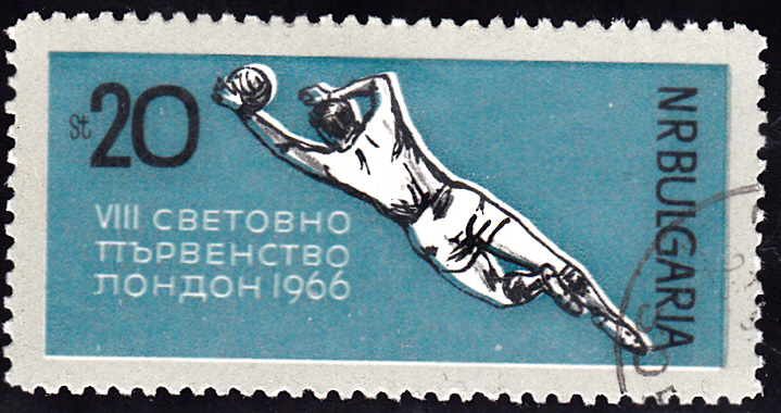 Die letzte Marke der Serie aus Bulgarien (MiNr 1637) zeigt eine Parade eines Torwarts.