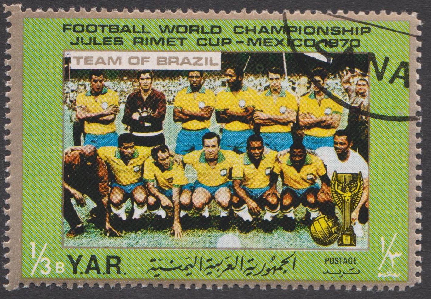 Hier die Marke aus Jemen mit der brasilianischen Mannschaft, MiNr. 1146: