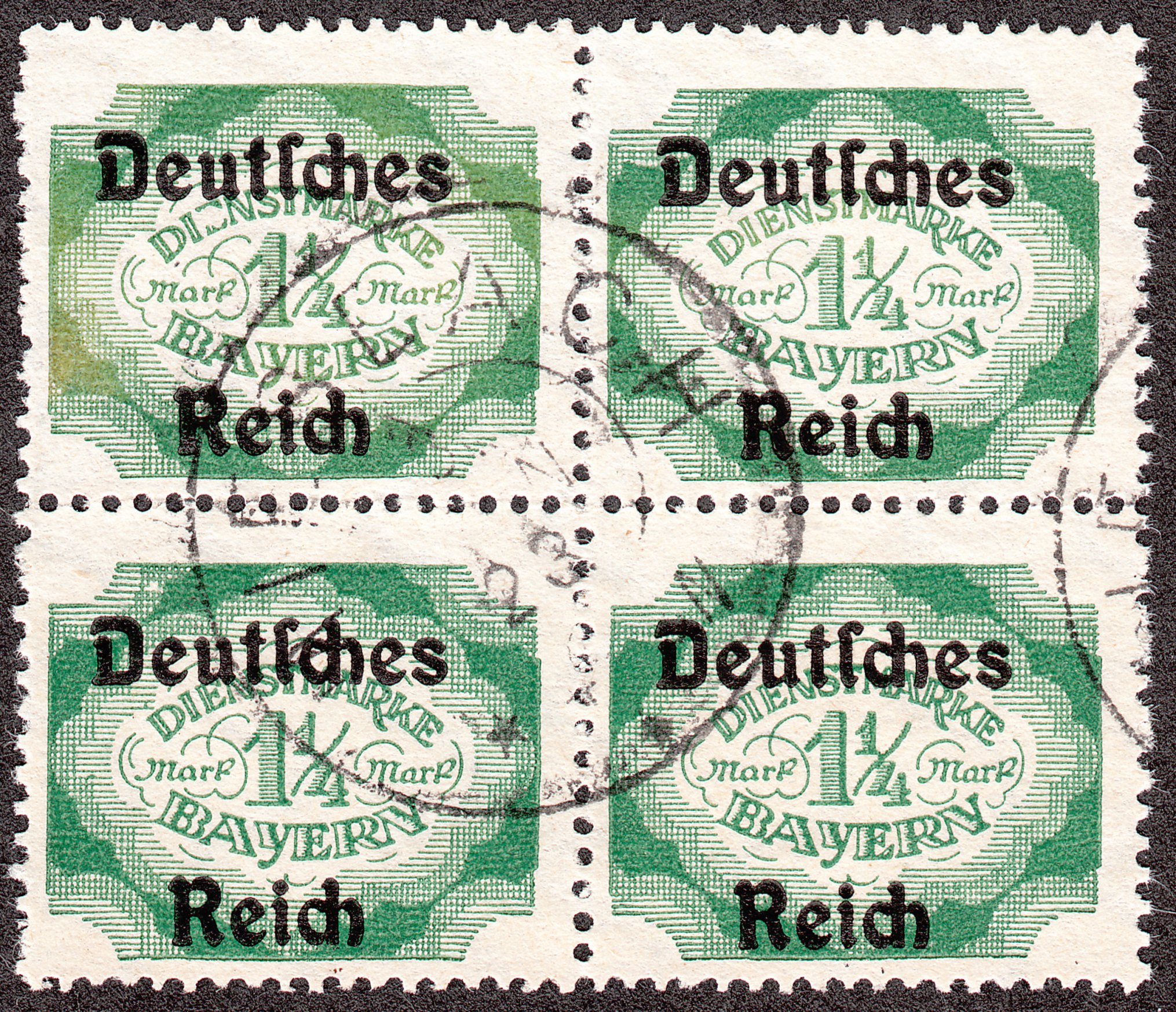 Bei diesem Beispiel wurde aus einer Dienstmarke des Sammelgebietes Bayern eine solche des Sammelgebietes Deutsches Reich: