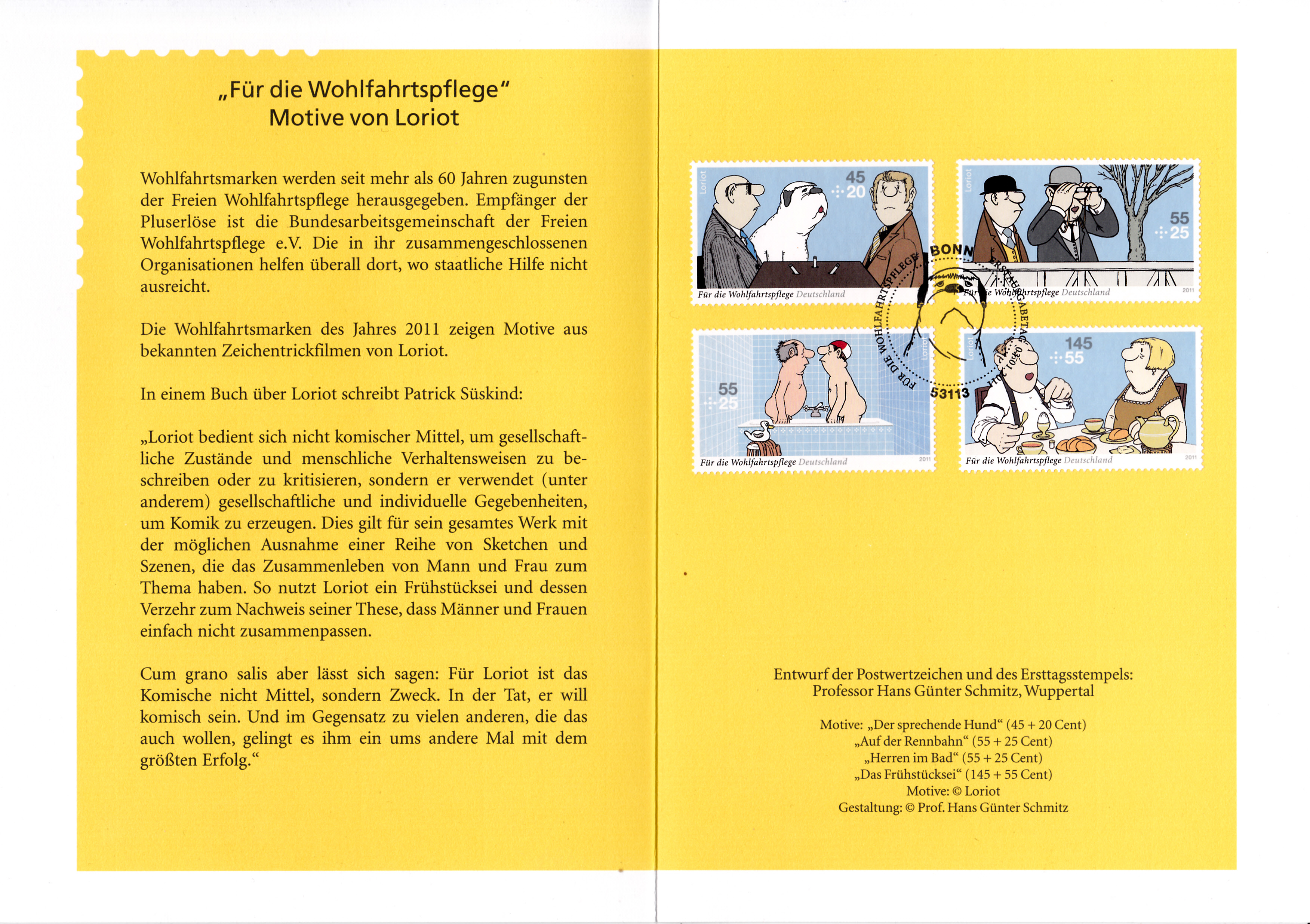 Ministerkarte des Finanzministers mit den zwei Marken aus der Serie "Helden der Kindheit" mit den Motiven "Heidi (MiNr 3506) und "Pippi Langstrumpf" (MiNr 3507) mit den beiden Ersttagsonderstempel Bonn und Berlin.