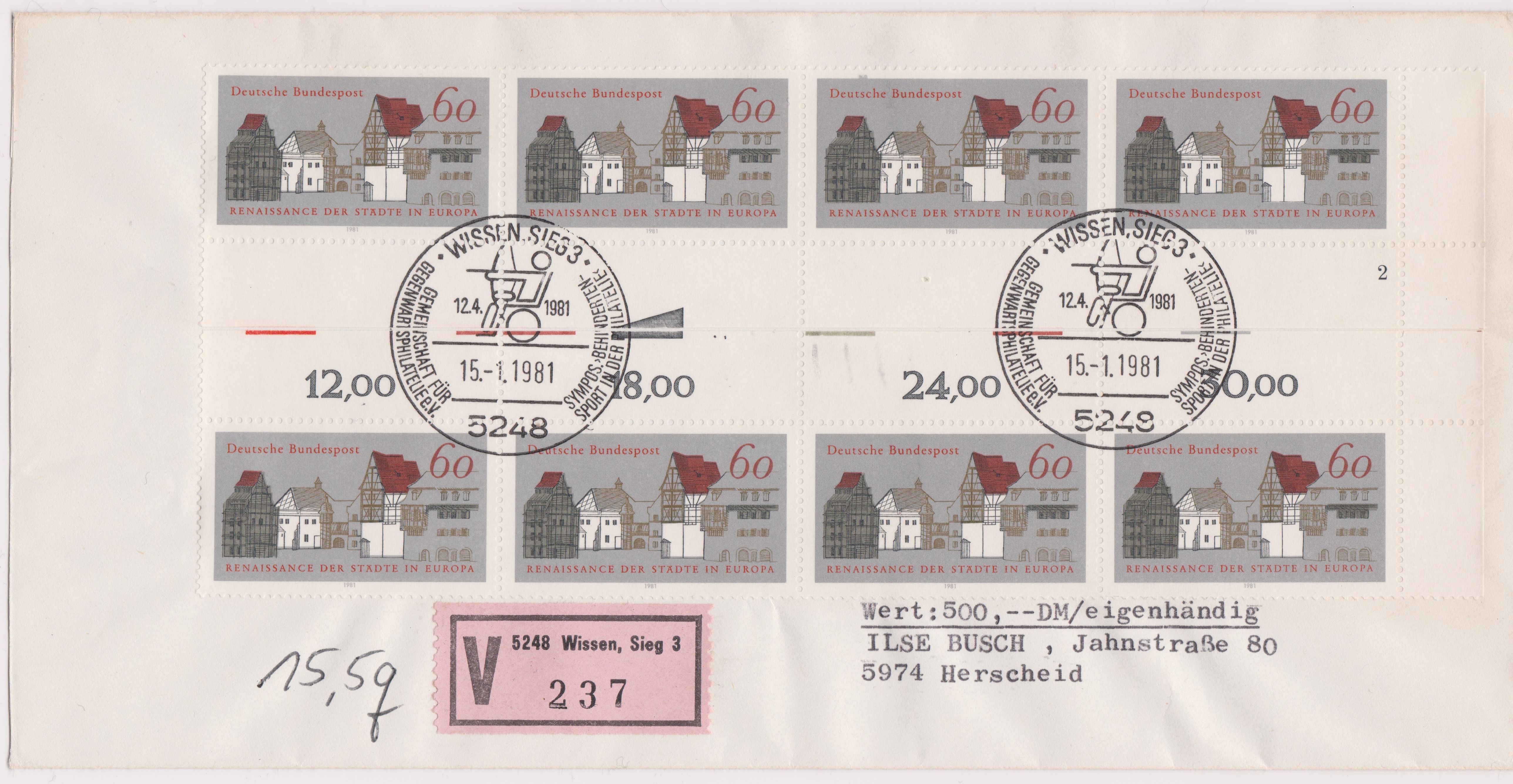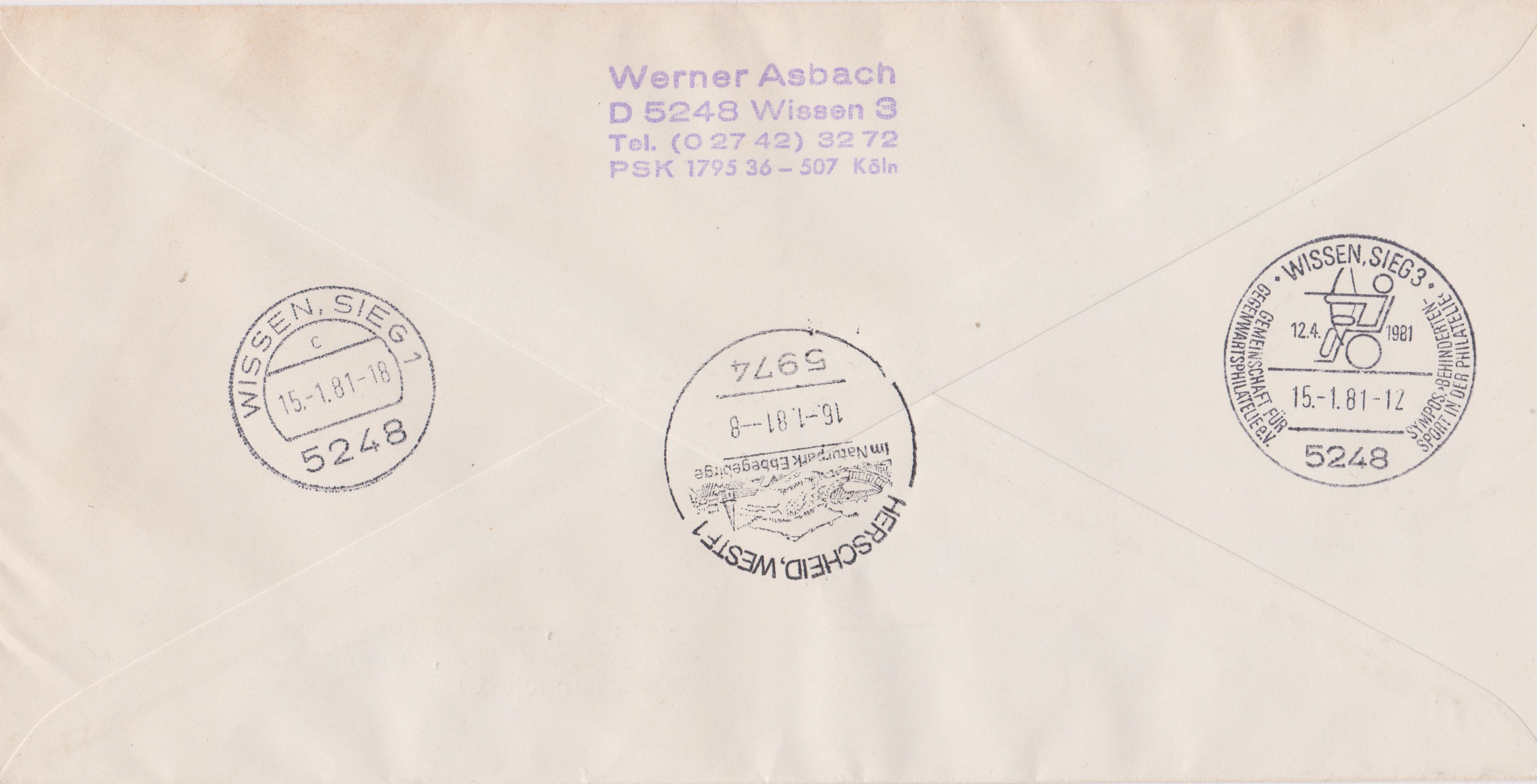 Es handelt sich übrigens um einen FDC, denn die MiNr. 1084 erschien am 15.01.1981 in einer Auflage von 31.000.000 Stück.