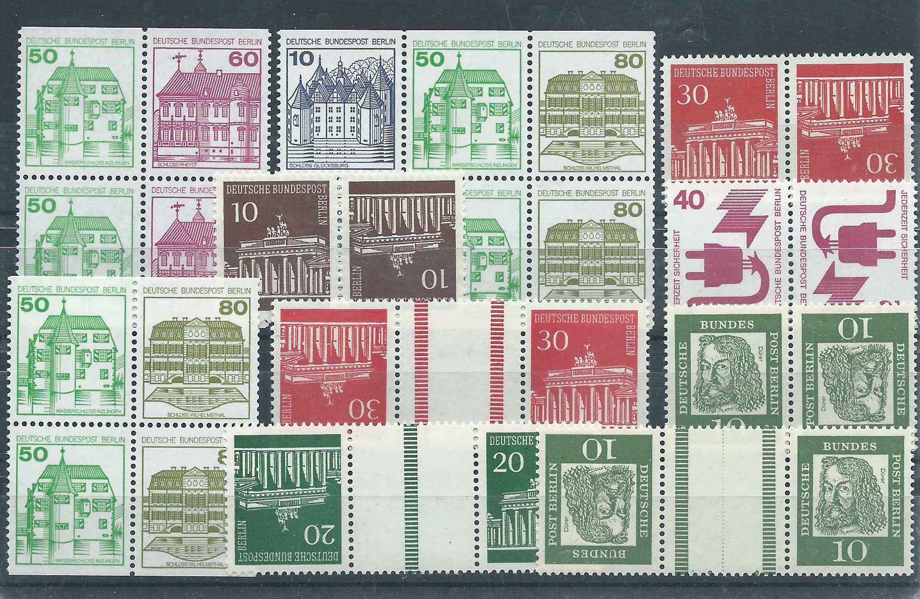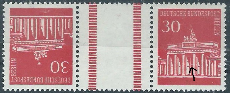 Das Augenmerk sollte auf den Zusammendruck Brandenburger Tor 30 Pf mit dem Zwischenfeld gerichtet werden. Hier einmal einzeln im Bild, so wie auf der Karte gesteckt:
