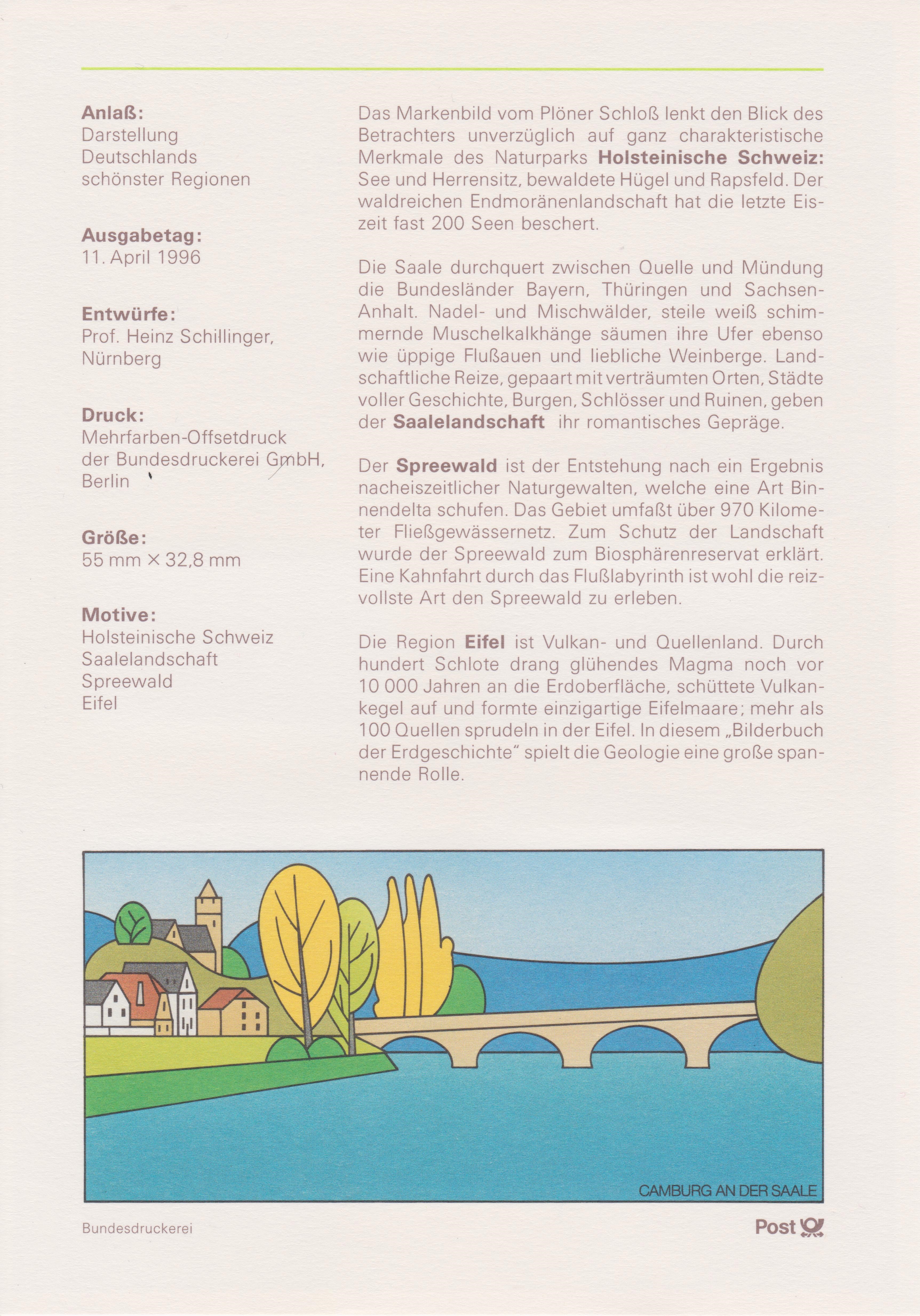 Dabei war dieses ERSTAGSBLATT 10/1996 mit einer MiNr. 1849 IV mit dem Plattenfehler "waagerechter schwarzer Strich in der dritten Säule von links des linken Turmes":