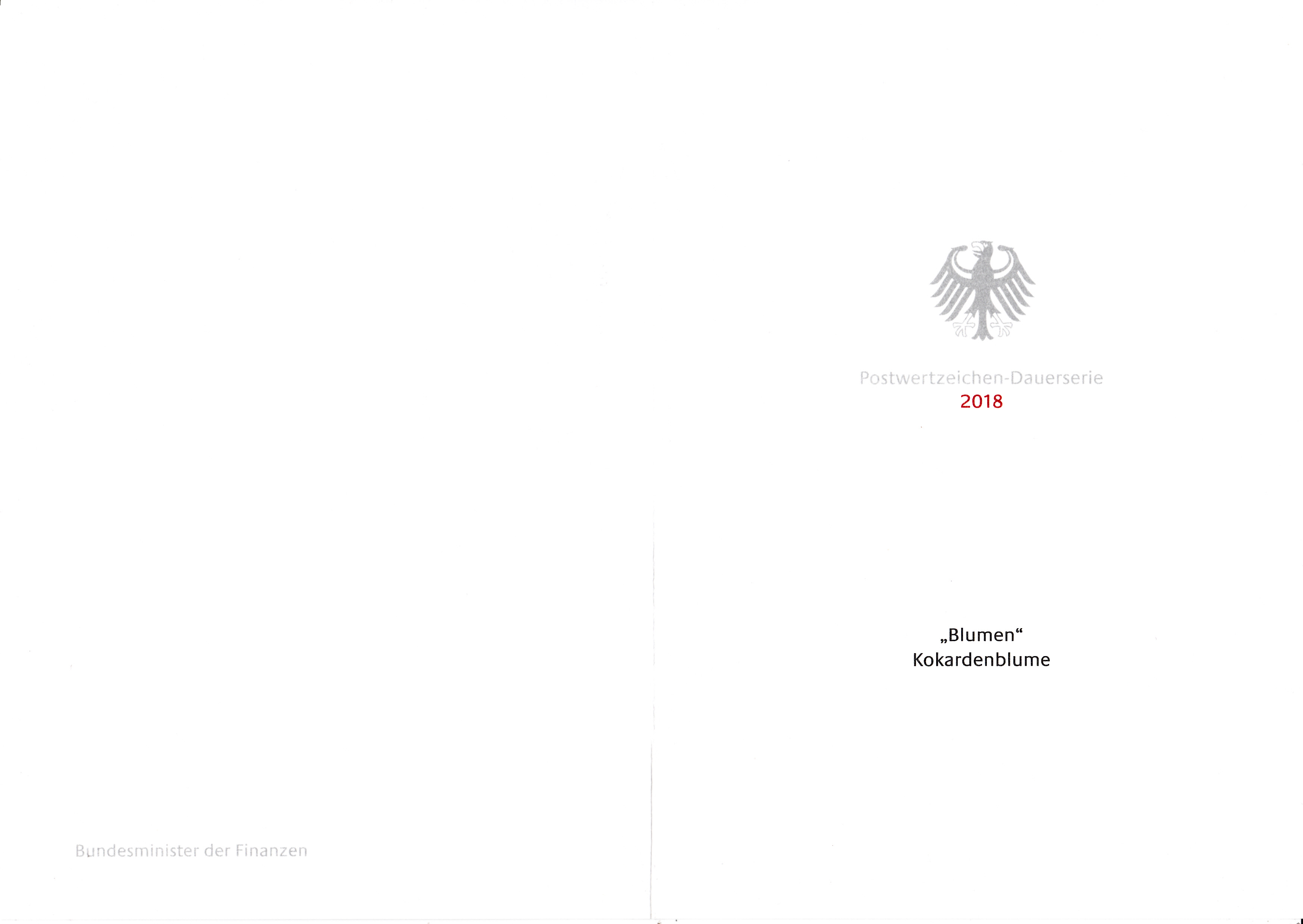 Ministerkarte des Finanzministers mit der Marke zu 379 Cent der Dauerserie "Blumen" (MiNr 3399) mit der Abbildung einer Großblumigen Kokardenblume (Gaillardia grandiflora) mit den beiden Ersttagsonderstempel Bonn und Berlin.