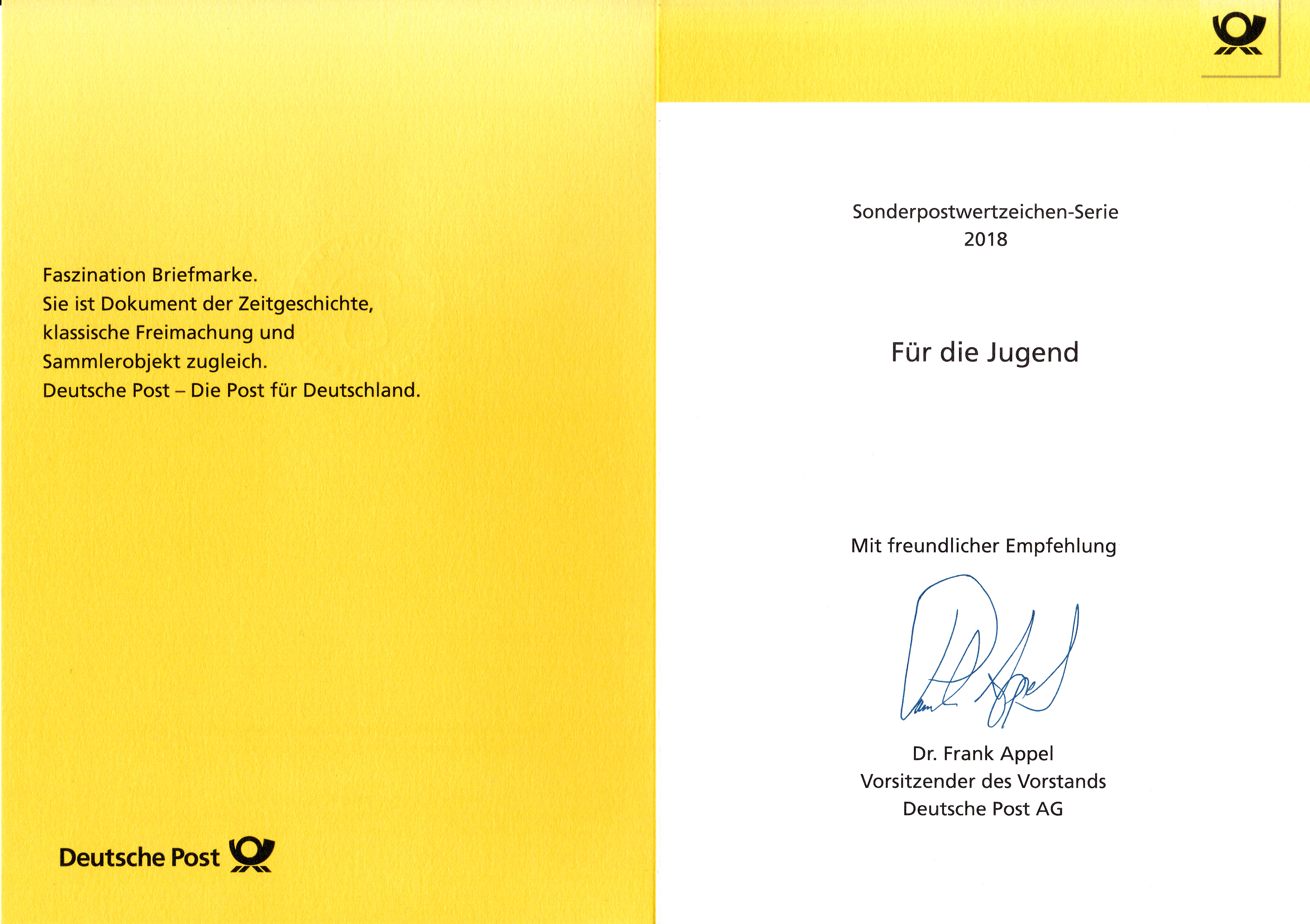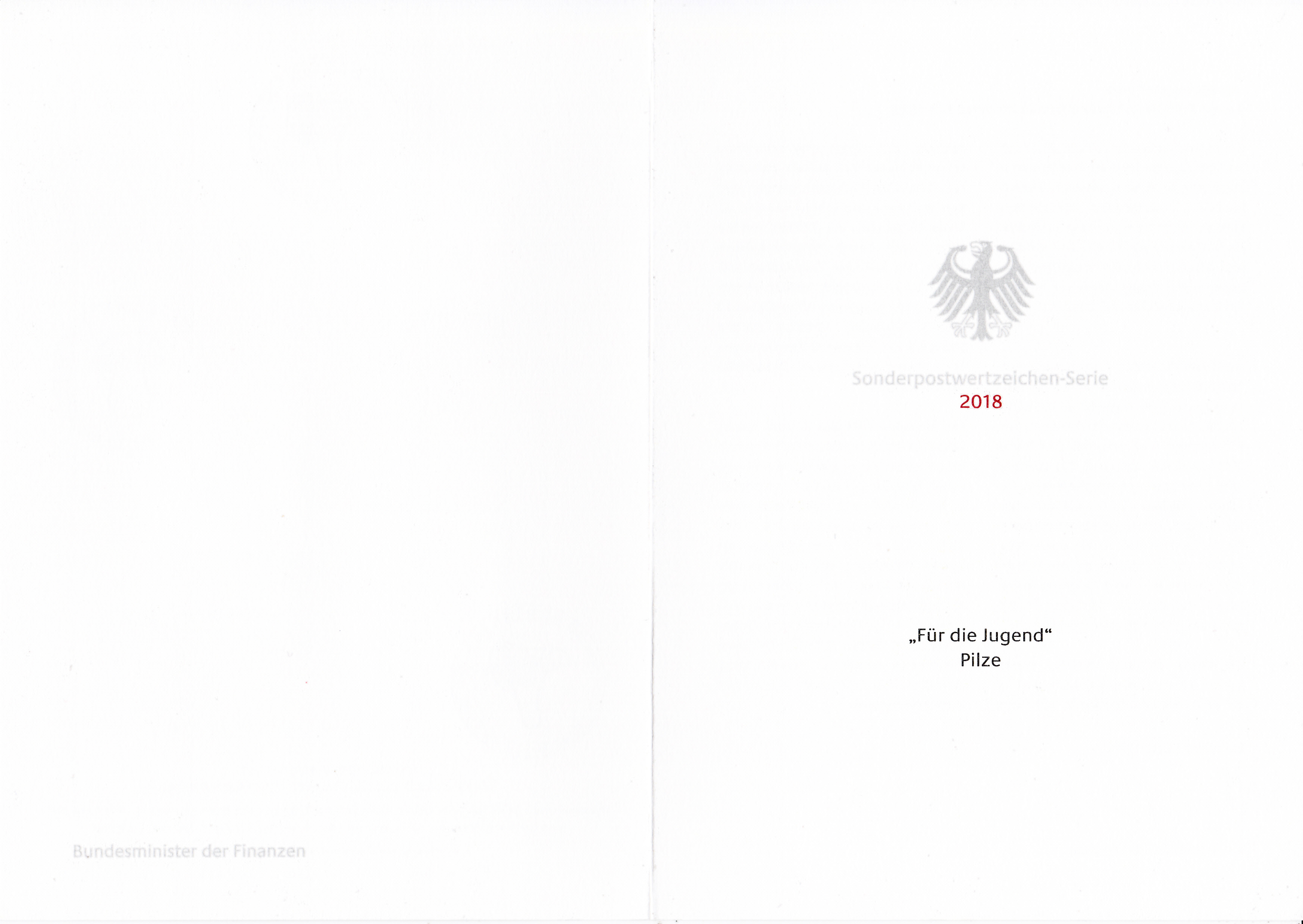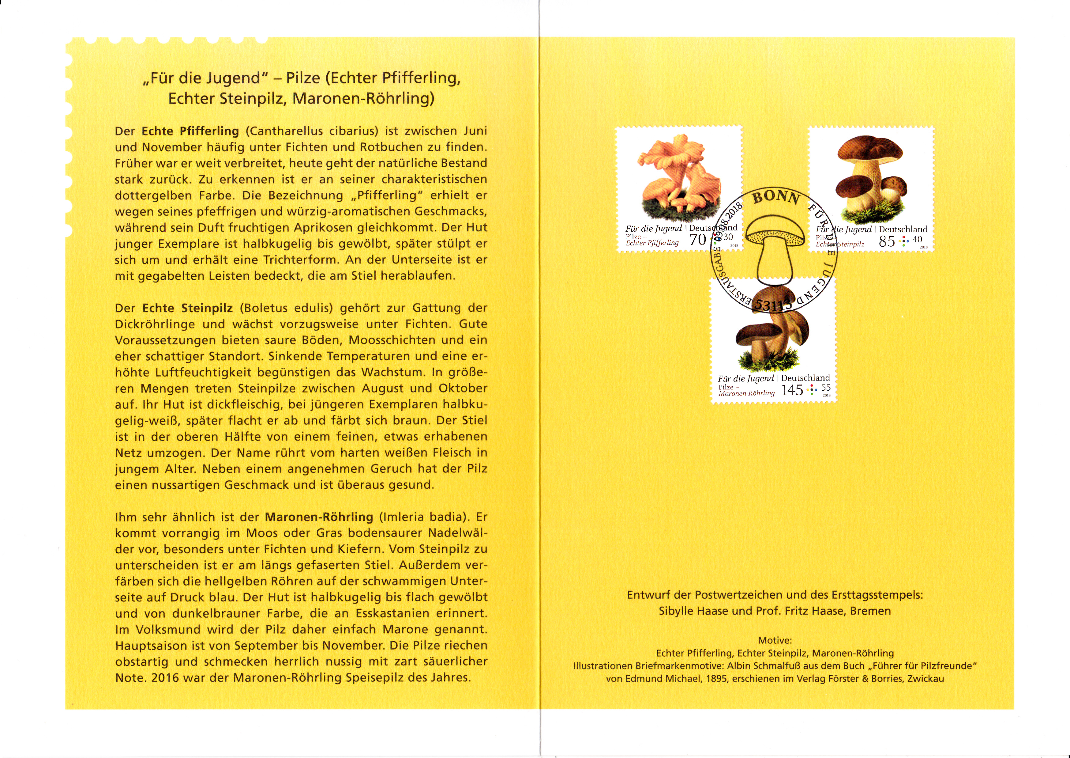 Jetzt folgen die beiden Klappkarte des Vorstandsvorsitzenden der Deutschen Post AG mit den Markenausgaben August 2018. Klappkarte des Vorstandsvorsitzenden der Deutschen Post AG mit den Marken für die Jugend mit den Motiven "Pilze" und dem Ersttagsonderstempel aus Bonn.