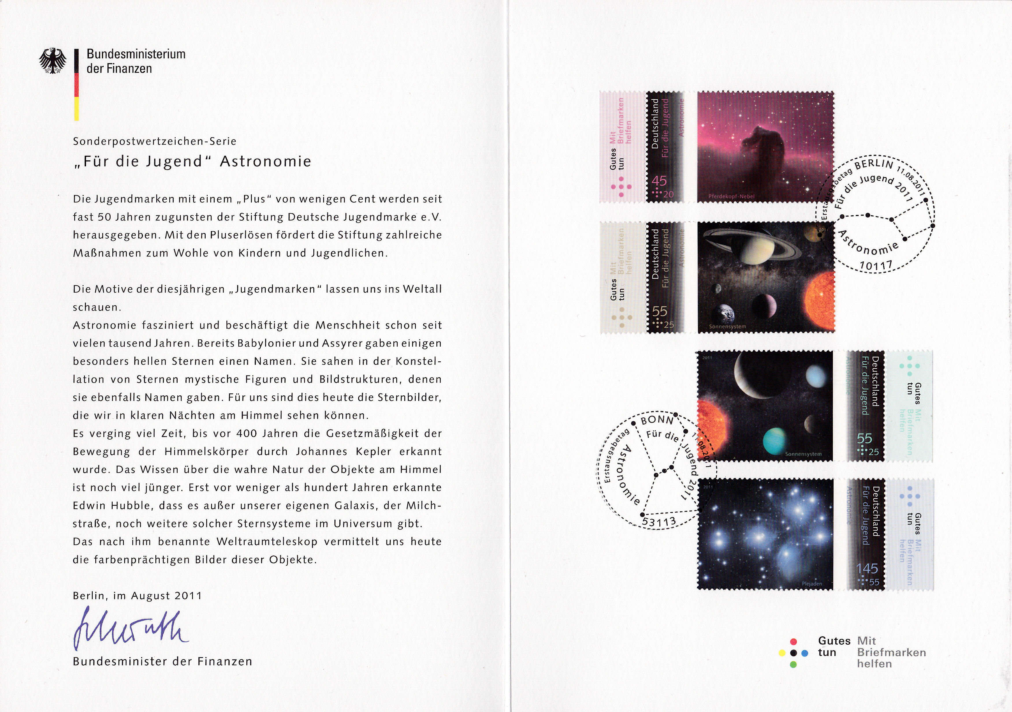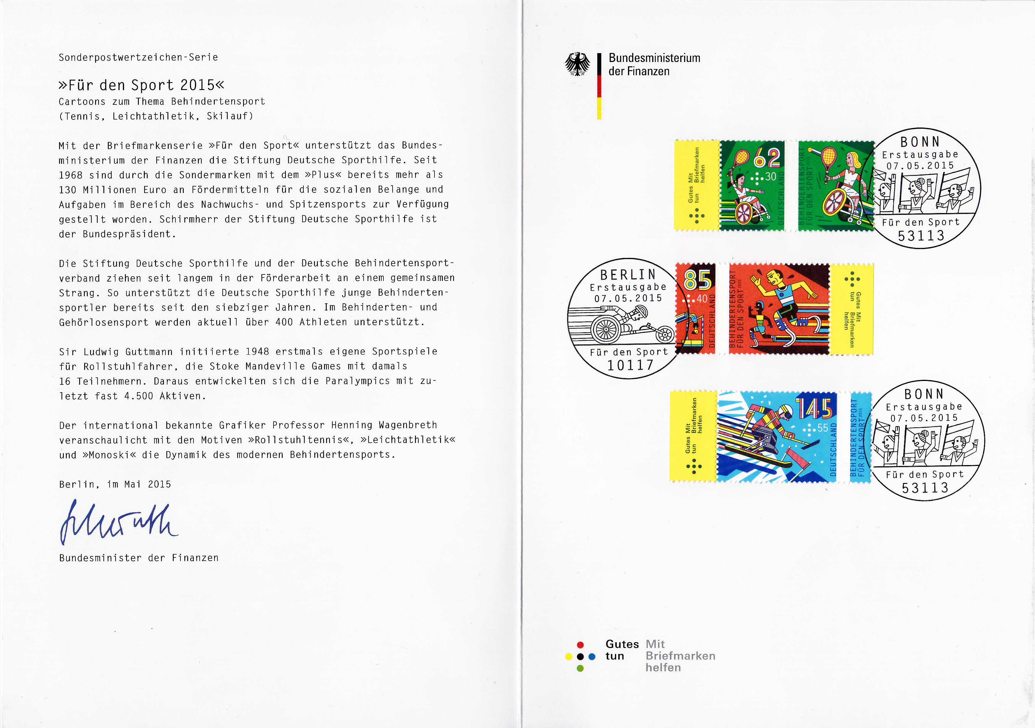 Hier eine Ministerkarte in der gleichen Art zu den Marken "Für die Jugend" 2015: