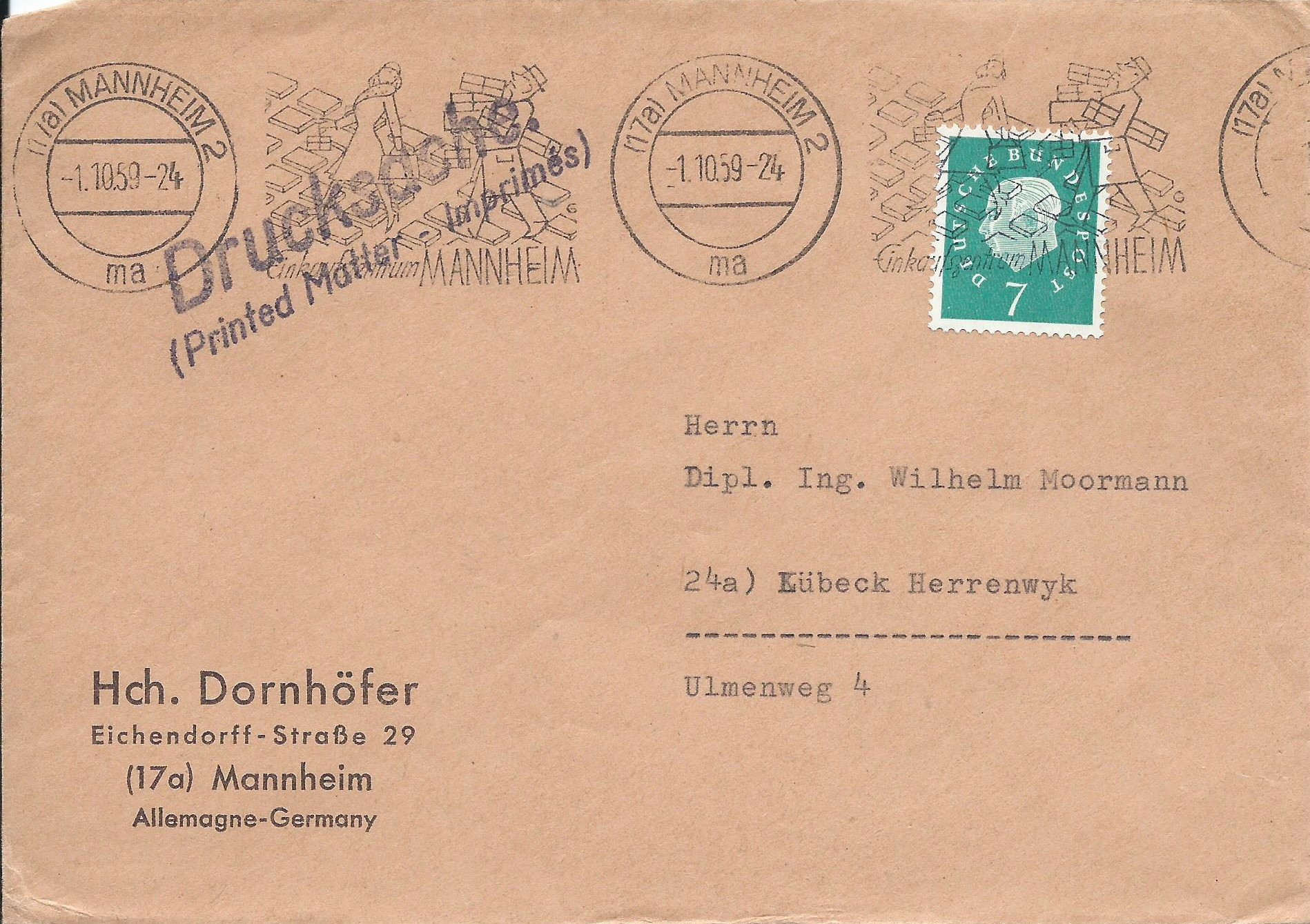 Mannheim 2 zeigt das Einkaufszentrum Mannheim am 1.10.59: