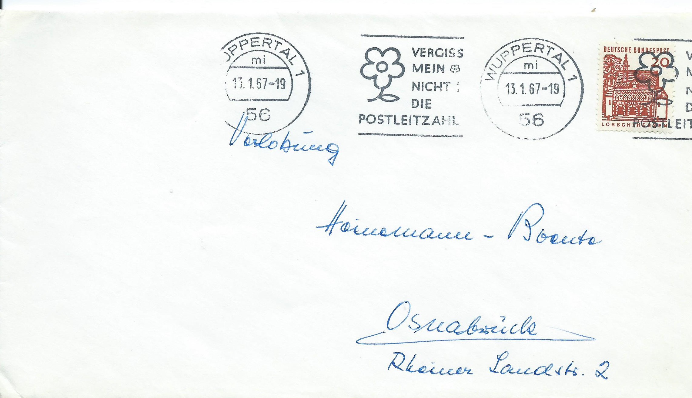 Vergiss mein nicht: Die Postleitzahl. Darauf weist Wuppertal am 13.12.67 hin:
