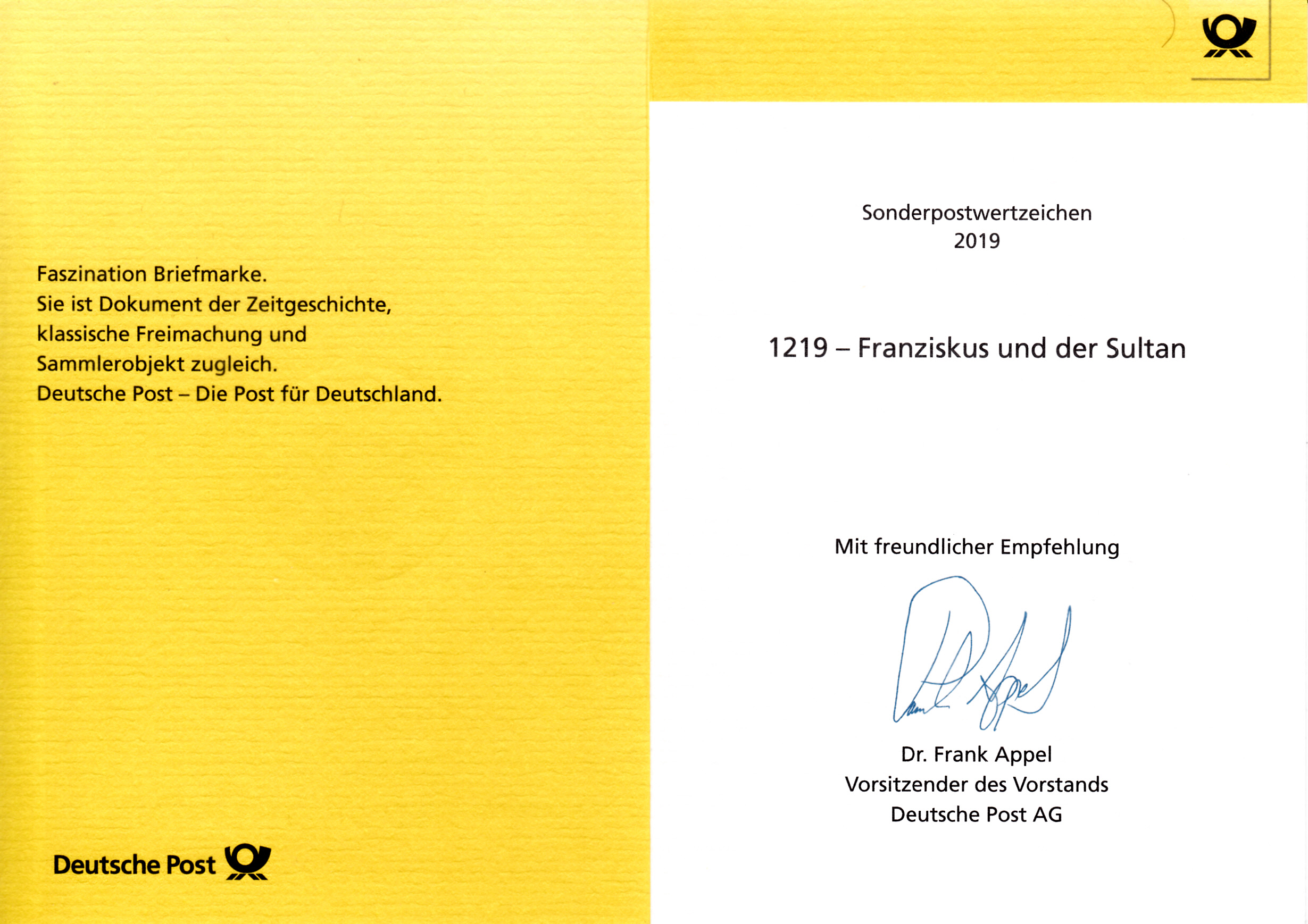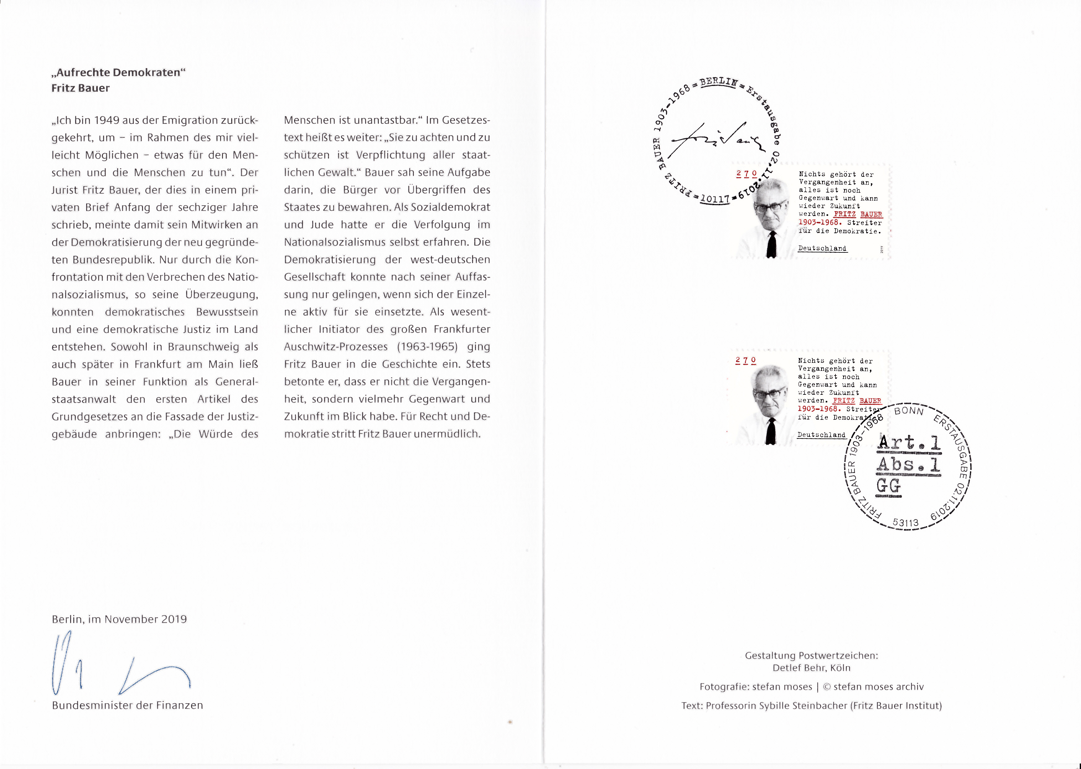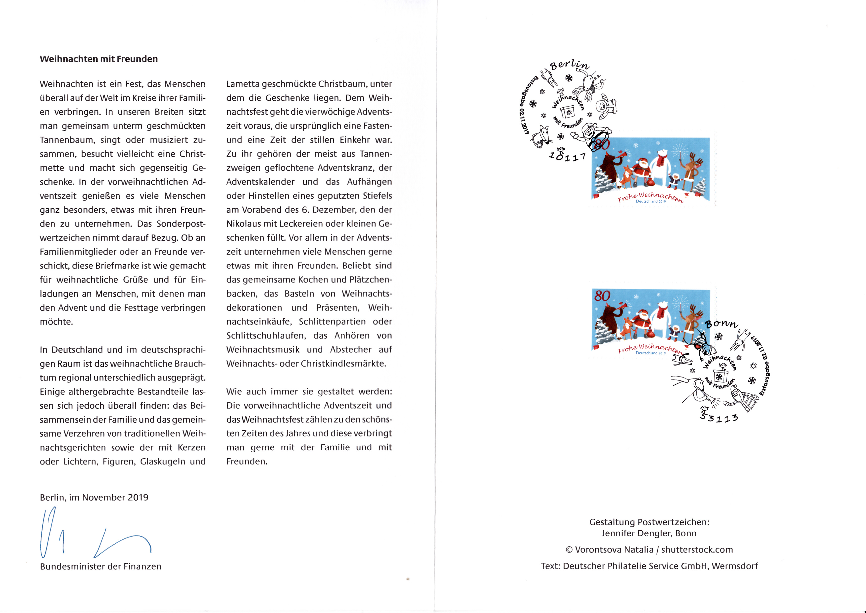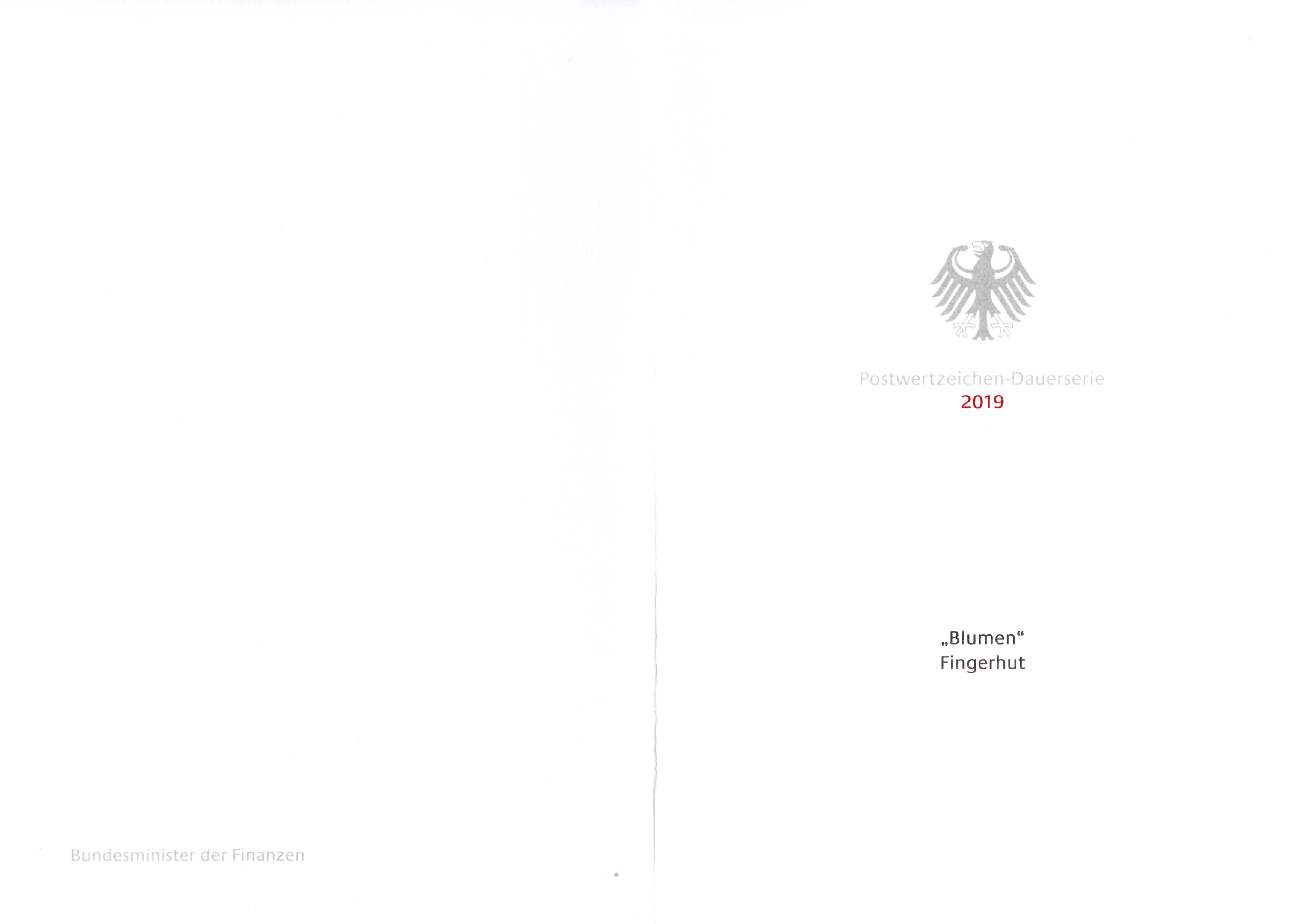 Ministerkarte des Finanzministers mit zwei Marken der Dauerserie "Blumen" zu 370 Cent mit dem Motiv "Roter Fingerhut (Digitalis purpurea)" (MiNr 3501) und den beiden Ersttagsonderstempel Bonn und Berlin.