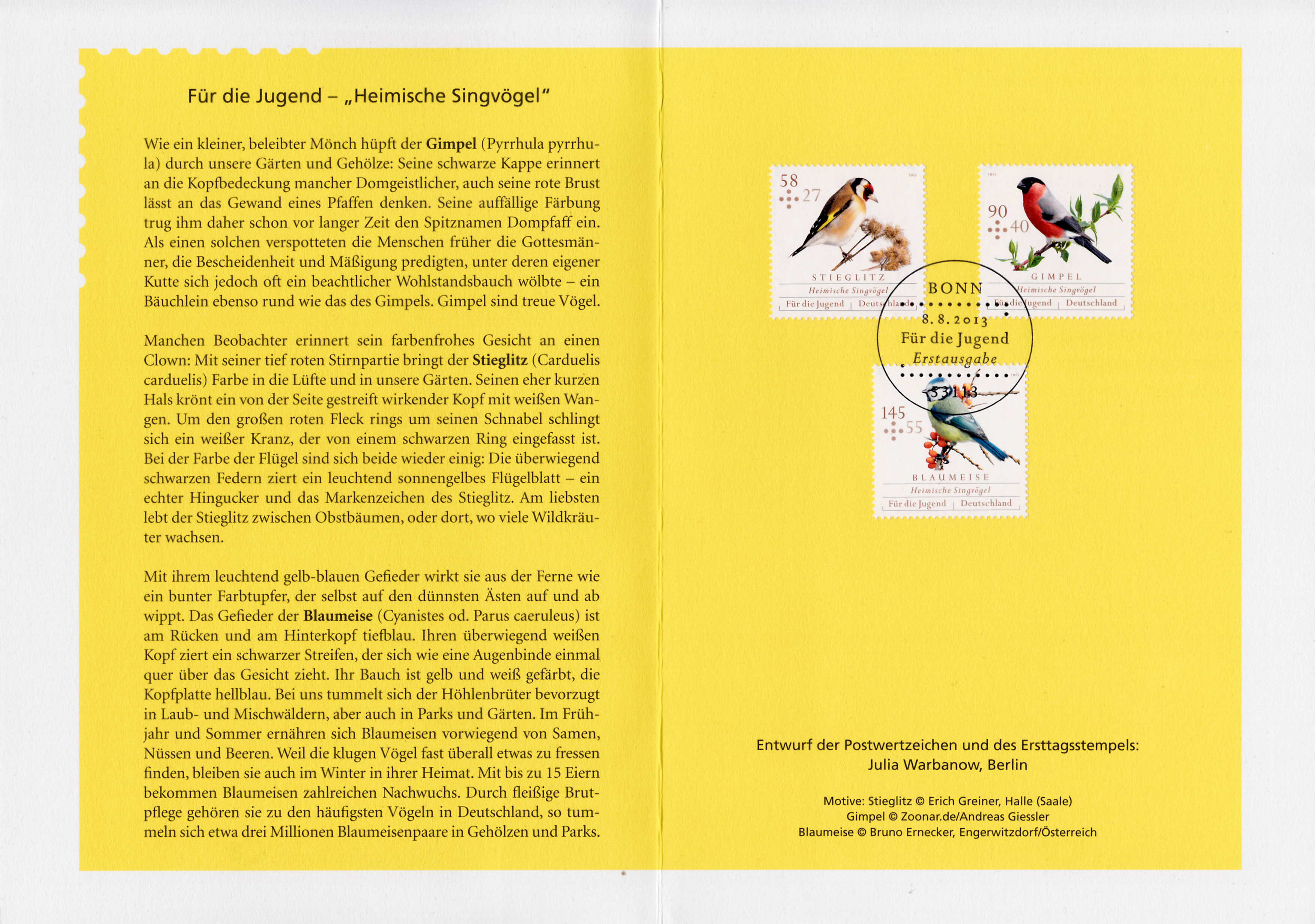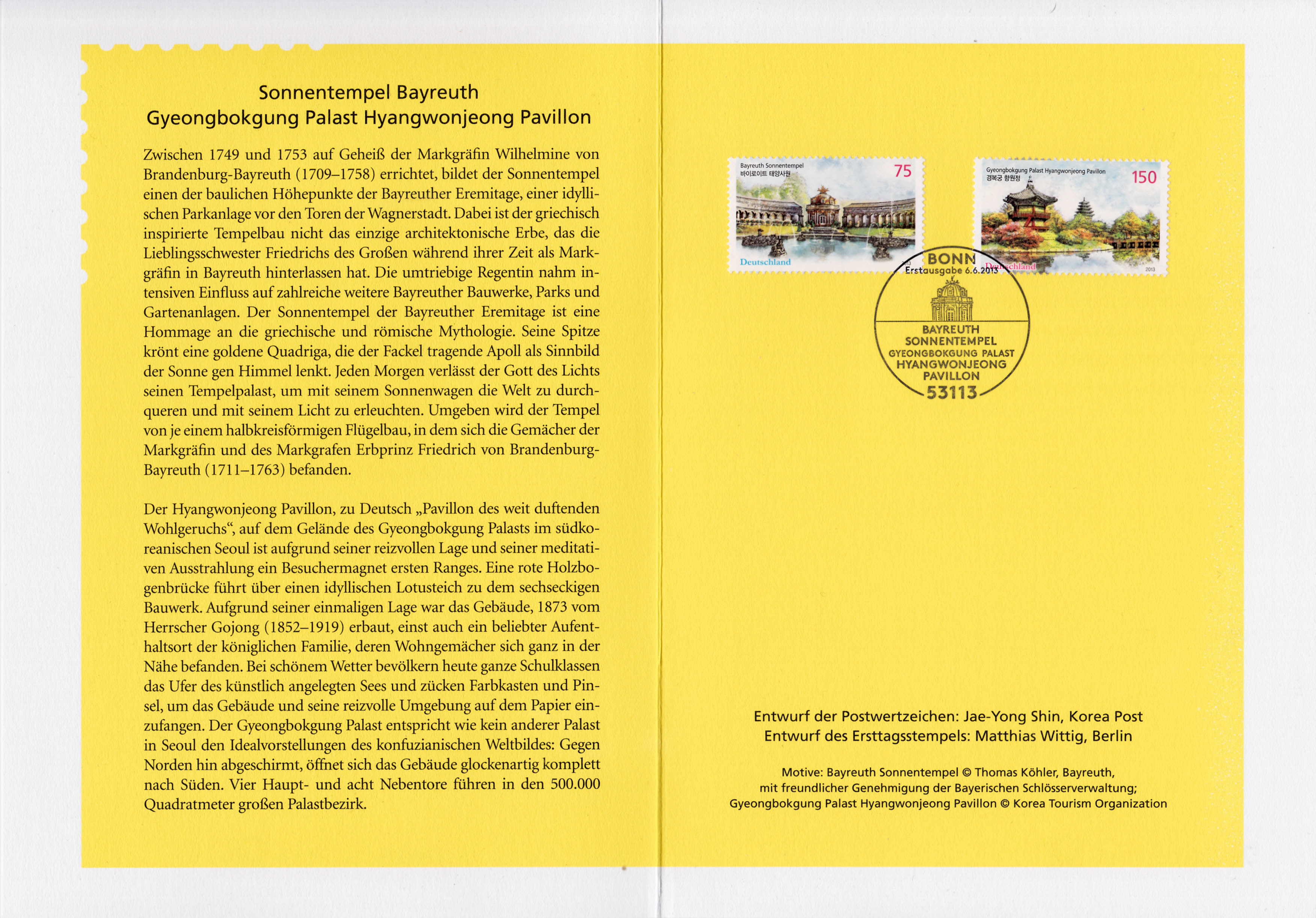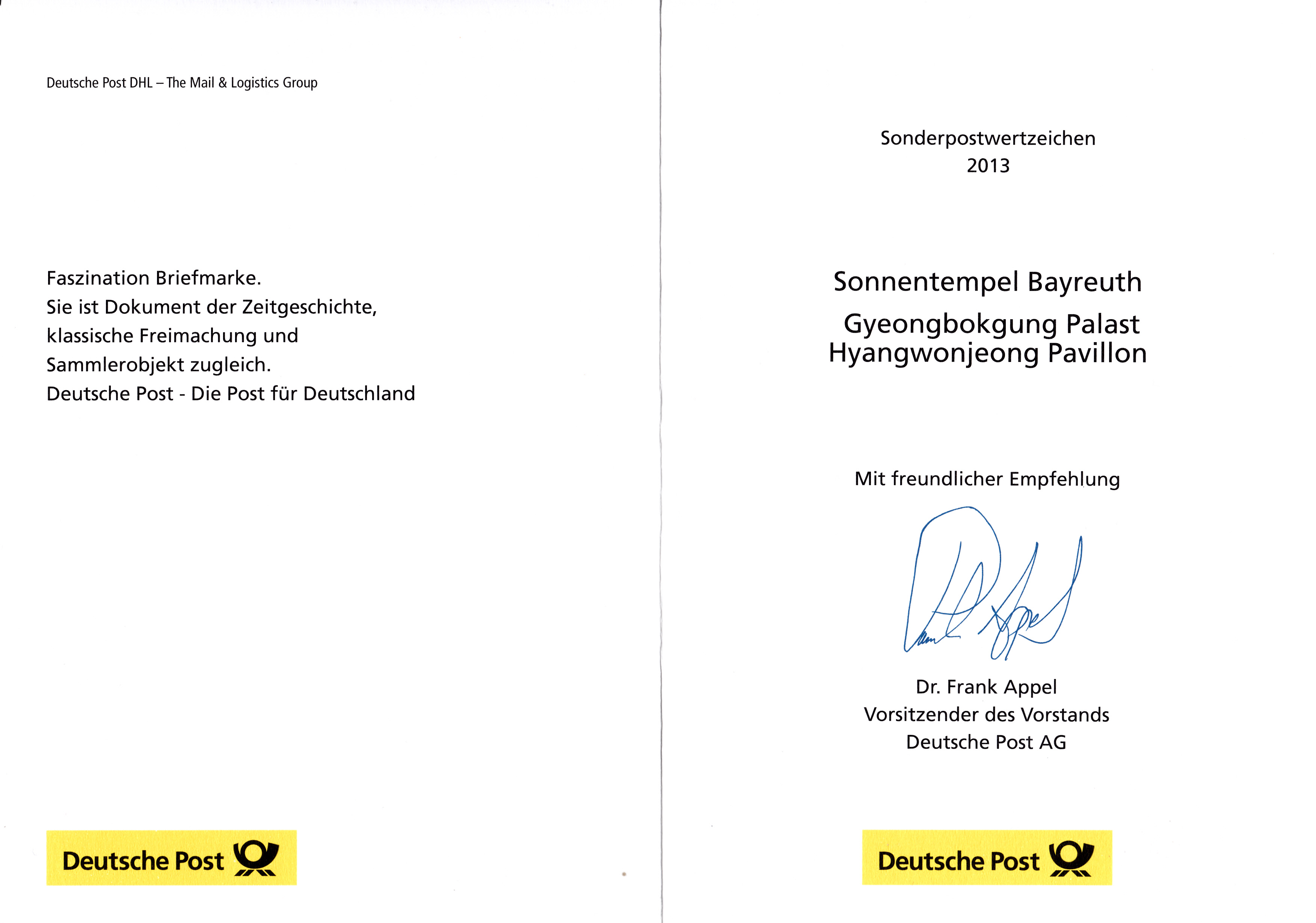 Die farbige Ministerkarte des Finanzministers mit den Marken "Für den Sport" 2007 enthält die vier Zuschlagsmarken des Jahres 2007. Eine kleine Besonderheit gibt es aber: Da die Marke zu 55+25 Cent zur Handball-Weltmeisterschaft bereits am 2.1.2007 erschienen ist, die drei weiteren Marken aber erst am 8.2.2007 tragen die zwei Ersttagstempel Berlin verschiedene Stempeldaten, die beiden Bonner Ersttagstempel haben das Datum 8.2.2007.