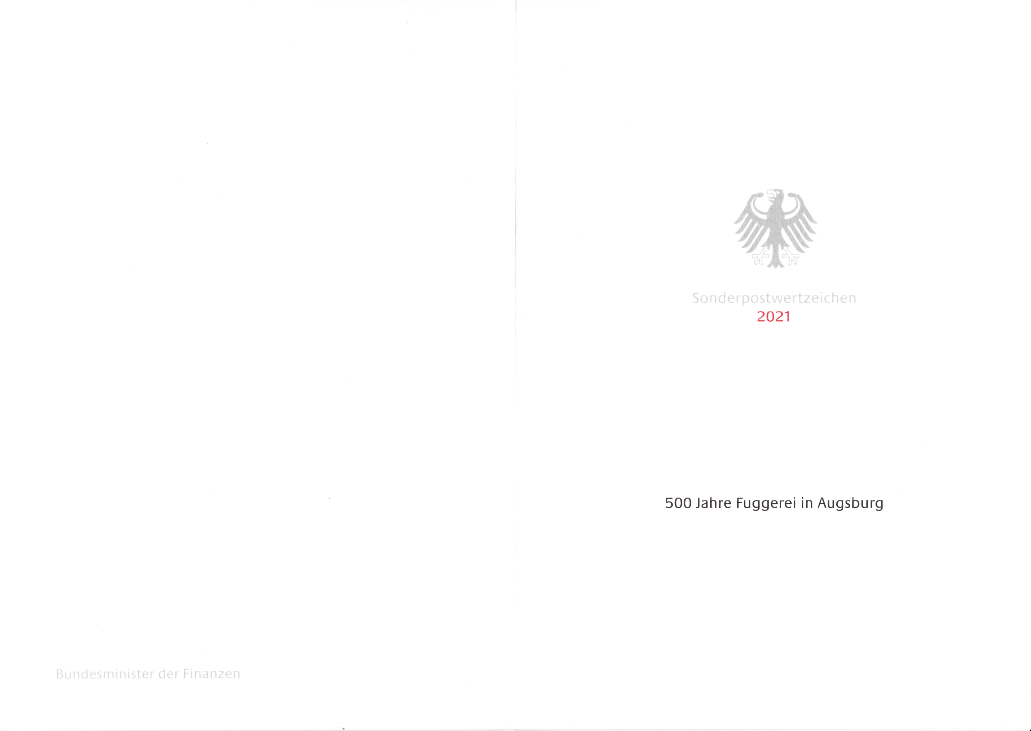 Ministerkarte des Bundesministers für Finanzen mit zwei Marken der Deutschen Post (MiNr 3621) "10500 Jahre Fuggerei in Augsburg" und den beiden Ersttagsonderstempel Bonn und Berlin.