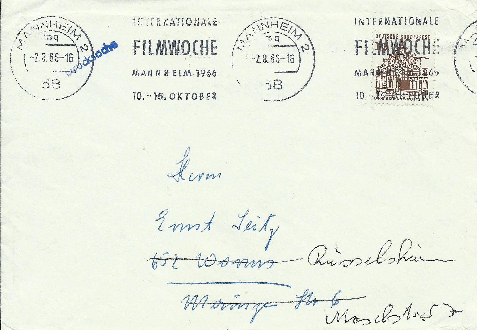 Und zum Abschluss für heute noch 2 Belege aus Mannheim 2: Einmal Werbung für die Internationale Filmwoche Mannheim 1966:
