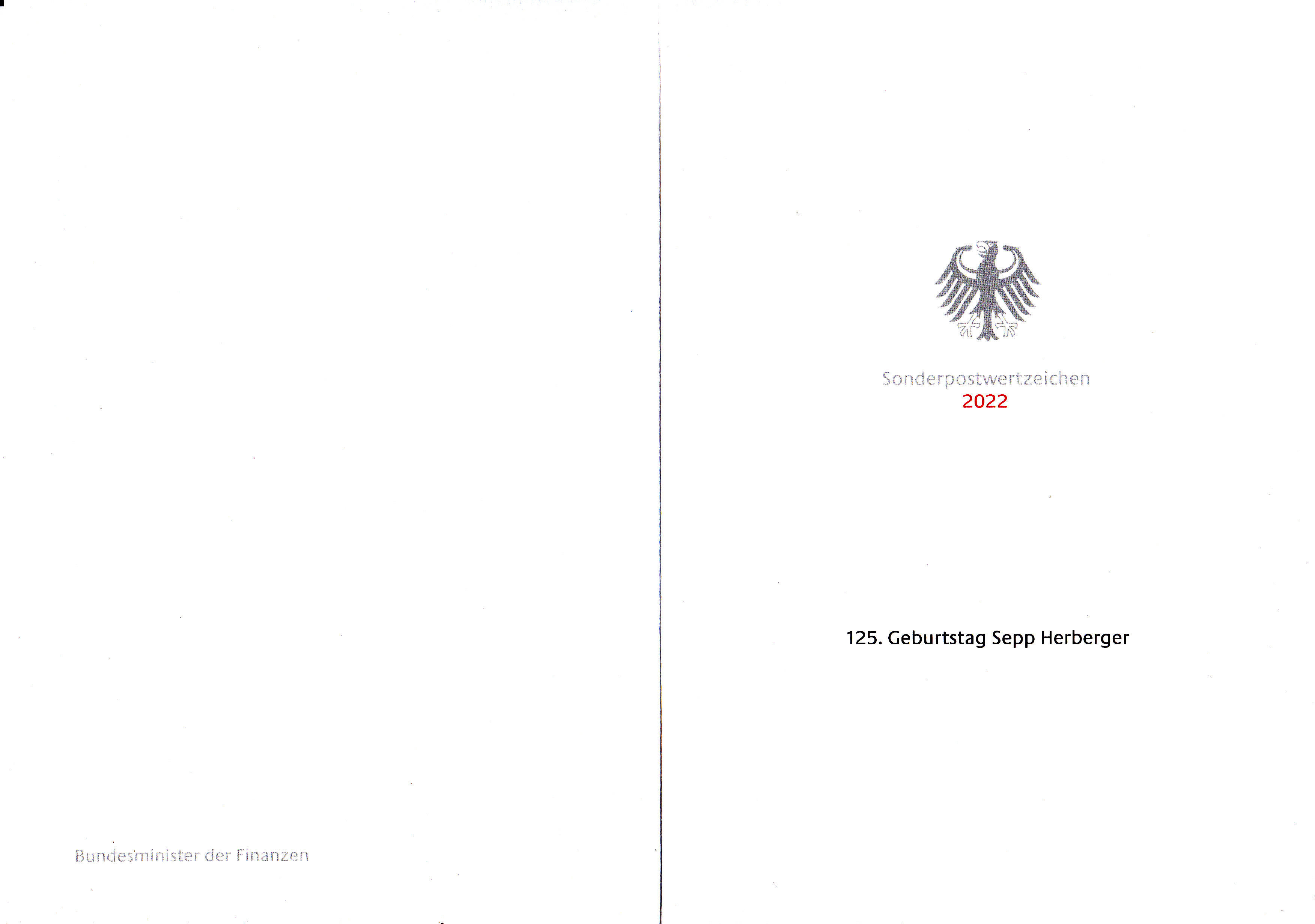 Ministerkarte des Finanzministers mit zwei Marken zum 125. Geburtstag von Josef Herberger (MiNr 3675) und den beiden Ersttagsonderstempel Bonn und Berlin.