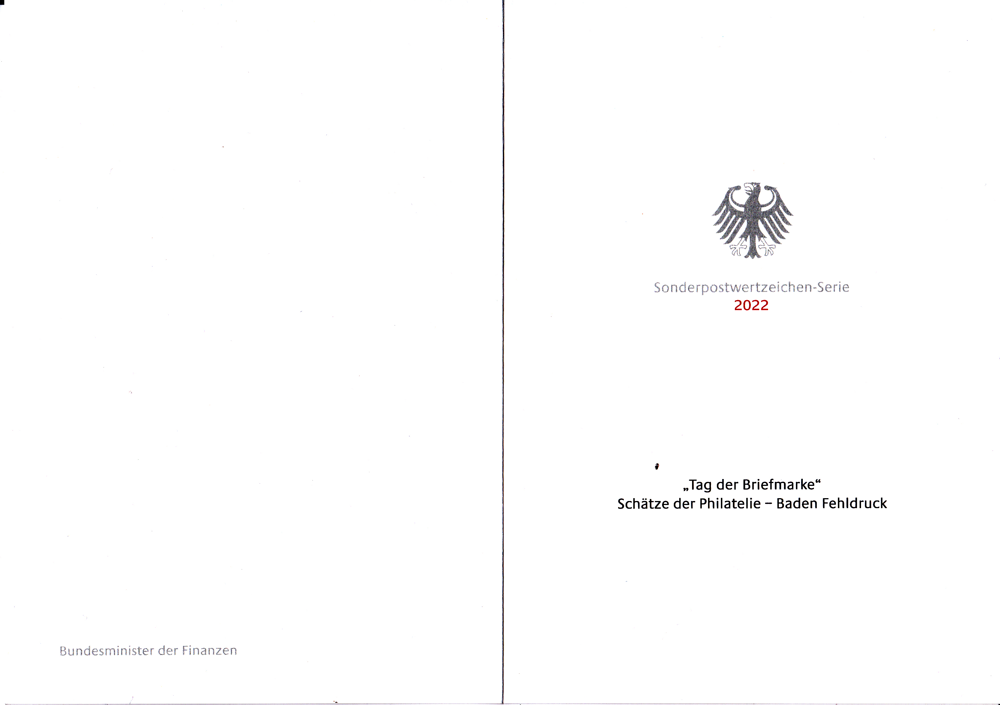 Ministerkarte des Bundesministers für Finanzen mit zwei Marken (MiNr 3719) zum Tag der Briefmarke 2022 und den beiden Ersttagsonderstempel Bonn und Berlin.