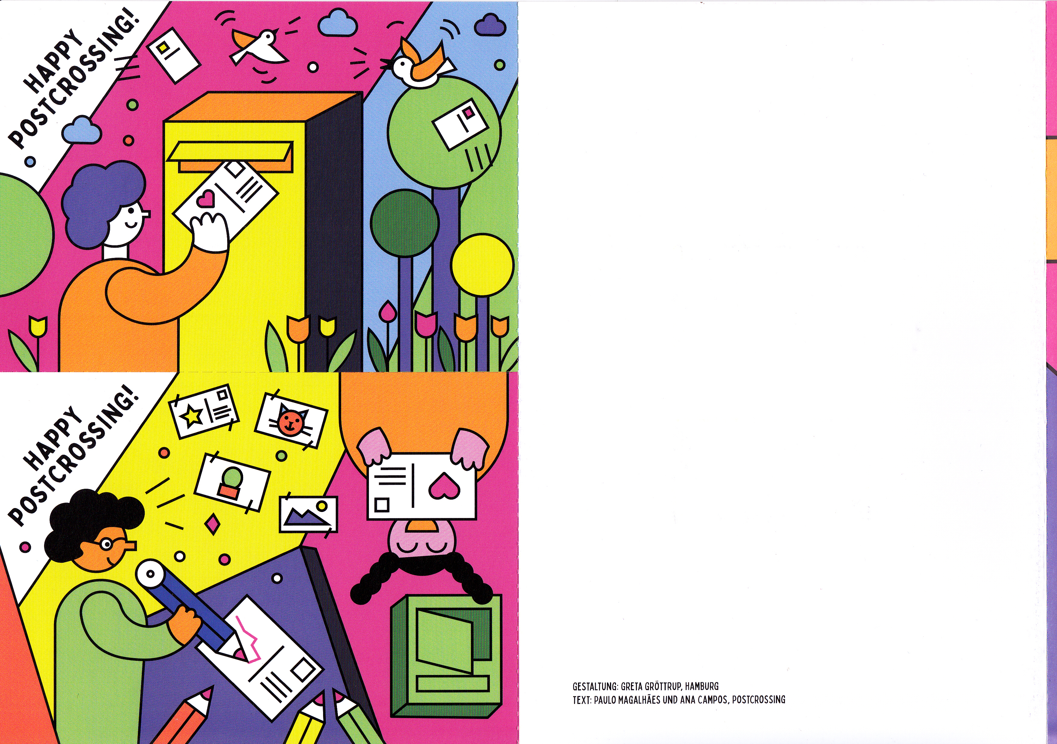 Diese Klasppkarte besitzt noch einen dritten Teil. Er besteht aus zwei Postkarten, die durch perforiert sind, damit sie leicht abgetrennt und verschickt werden können.