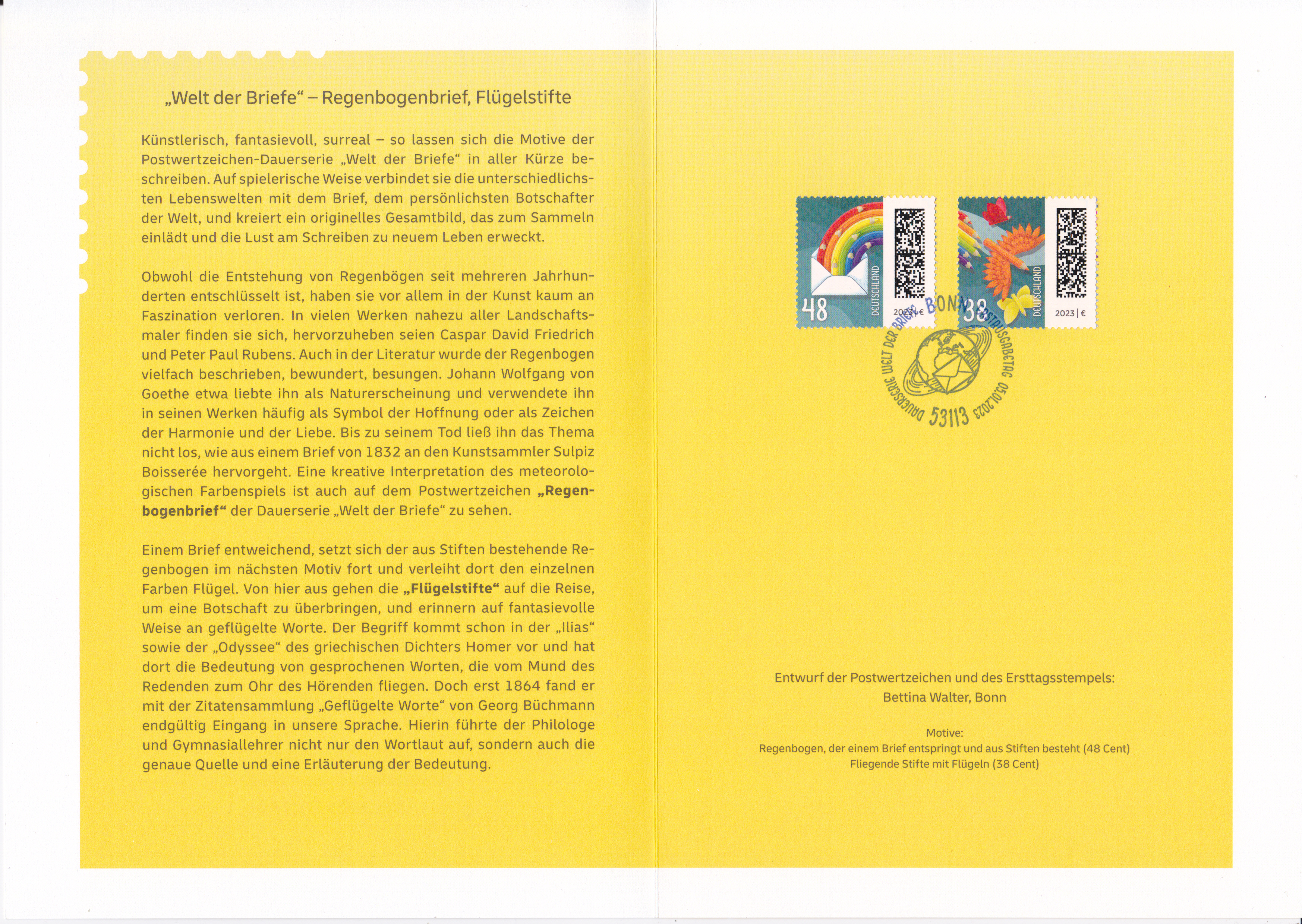 Klappkarte des Vorstandsvorsitzenden der Deutschen Post AG mit je einer Marke zu 48 und 68 Cent aus der DS "Welt der Briefe"(MiNr 3734 und 3735) und dem Ersttagsonderstempel Bonn.