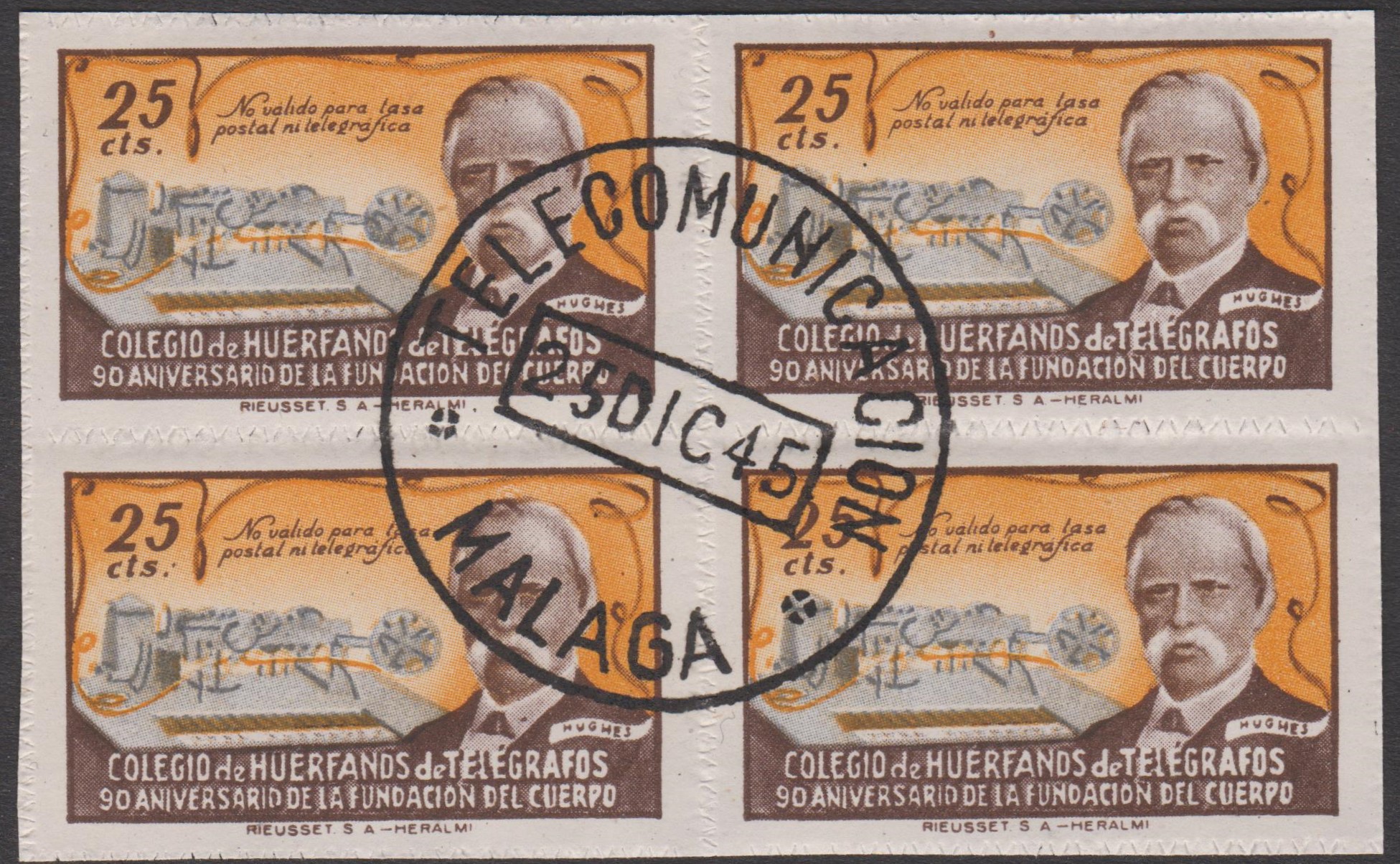 Hier ein Beispiel für eine solche Cinderella mit Stempel "TELECOMUNICACION MALAGA" vom 25.12.1945: