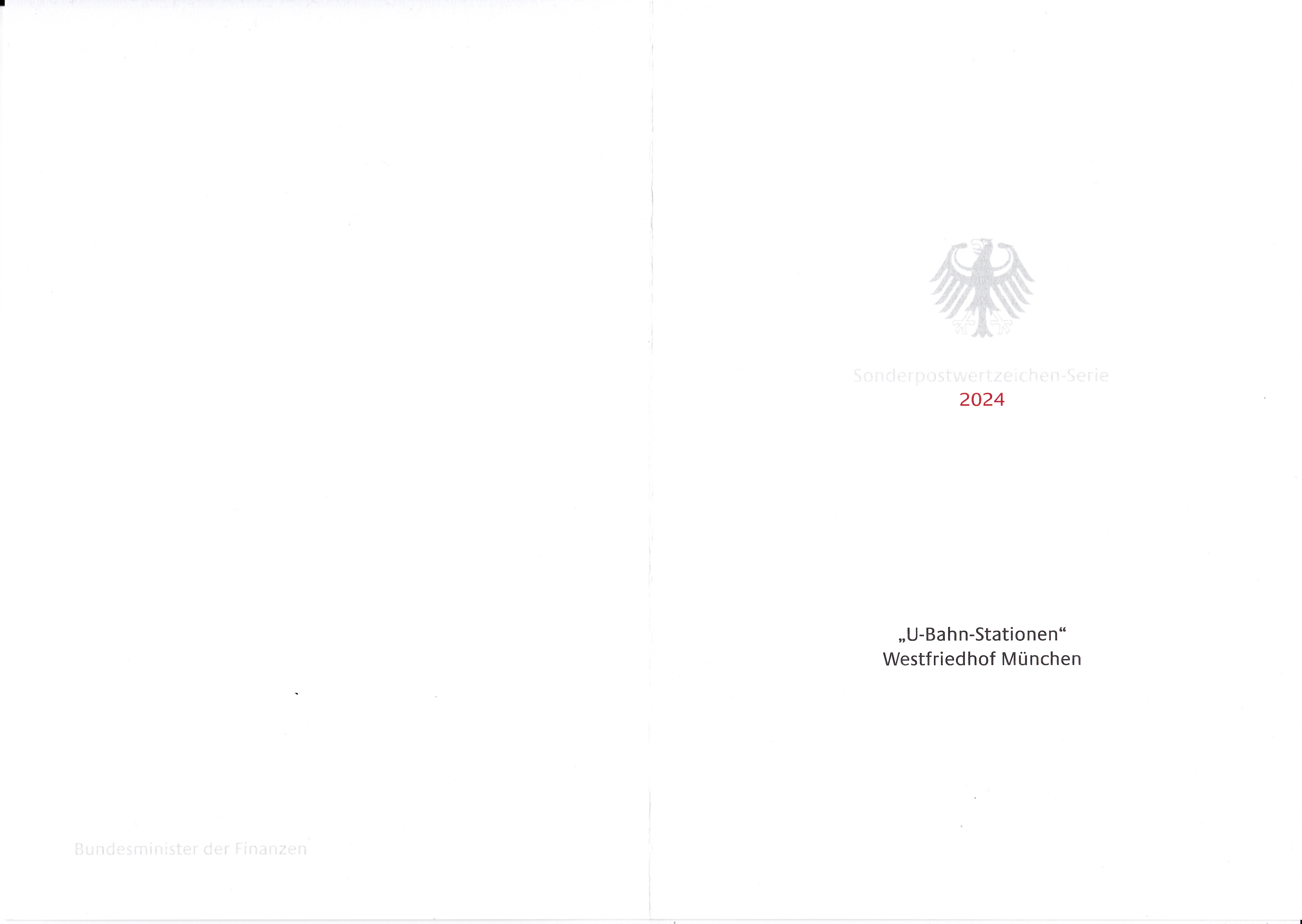 Ministerkarte des Bundesministers für Finanzen mit zwei Marken (MiNr 3807) mit dem Motiv "U-Bahn-Haltestelle Westfriedhof in München" aus der Dauerserie "U-Bahn-Stationen" und den beiden Ersttagsonderstempel Bonn und Berlin.