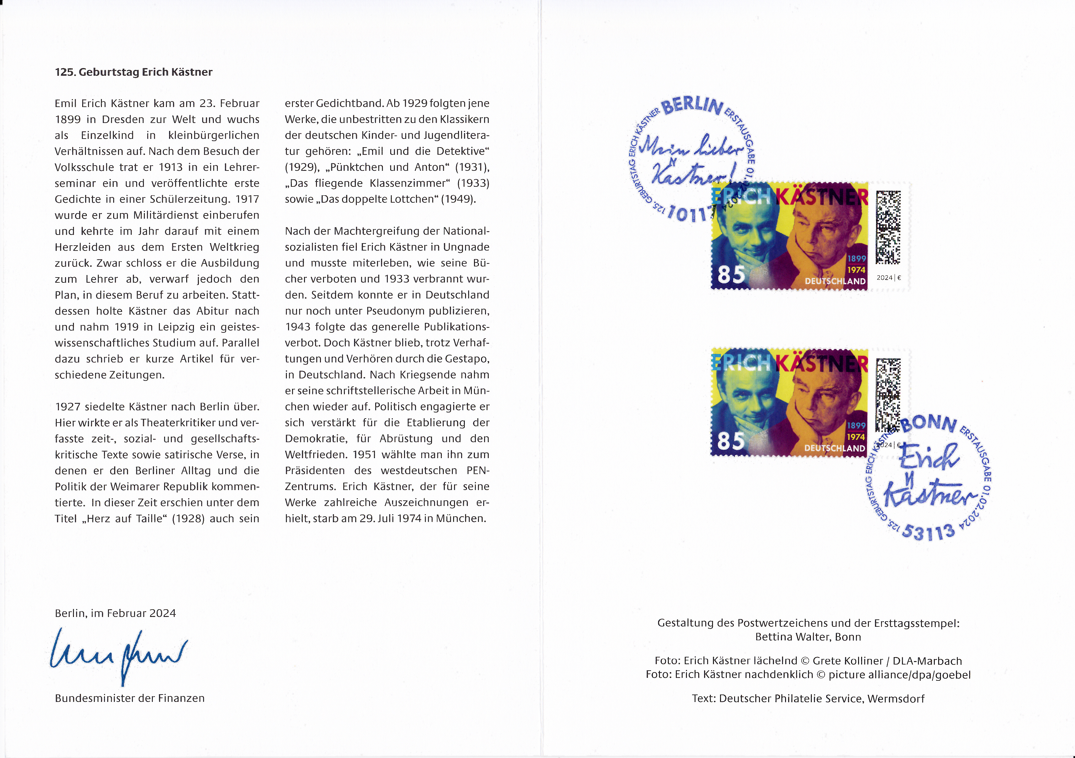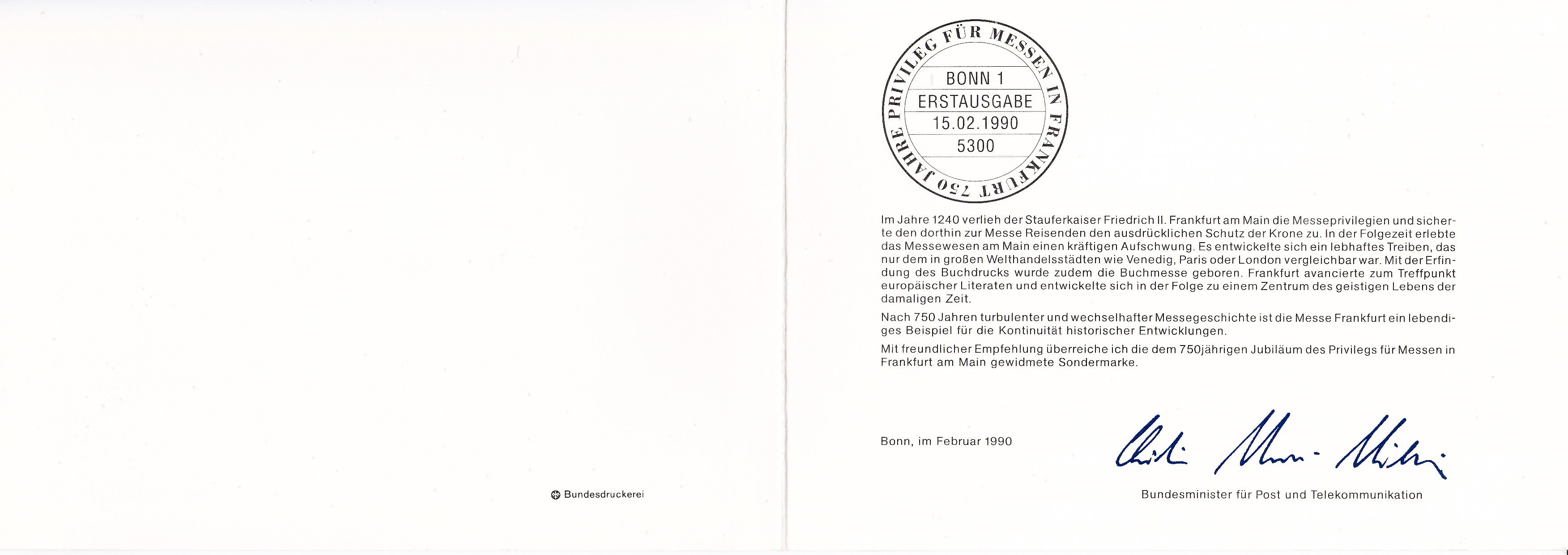 - Beide Innenseiten mit Bund MiNr 1468 und 1469 und Berlin MiNr 874